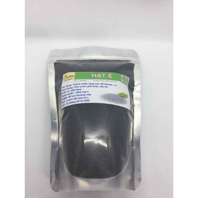 ️HẠT É hay “hột é” là một loại hạt của cây é, hay còn gọi là cây húng quế. ?QUI CÁCH : 0,5Kg/1Kg bằng túi Zipper ?NGUỒN GỐC: Xuất xứ thành phố Phan Rang - Tháp Chàm thuộc tỉnh Ninh Thuận - Việt Nam. ?HẠN SỬ DỤNG: 12 tháng kể từ ngày mở bao bì. ?ĐẶC ĐIỂM SẢN PHẨM: Hạt é dạng hạt bầu, màu đen, kích thước đều, hạt to, mùi cây quế, vị nhạt. ?BẢO HÀNH: Đổi trả miễn phí với trường hợp bao bì hư hỏng, bong tróc và đổi trả khi sản phẩm không đúng như cam kết về sản phẩm và cam kết bán hàng của shop. ?CAM KẾT VỀ SẢN PHẨM: Hạt é sạch 100% thiên nhiên, không chất bảo quản, không phụ gia, đảm bảo an toàn vệ sinh thực phẩm. ?CAM KẾT BÁN HÀNG: + Các bạn nhận được hàng chất lượng chính hãng lấy trực tiếp từ cơ sở sản xuất + Chúng tôi xin chịu đền bù 200% nếu như hạt bị ẩm mốc hư hỏng không đạt tiêu chuẩn. + Bán hàng bằng niềm tin đó là mục tiêu mà chúng tôi hướng đến. Vì thế chất lượng sản phẩm được chúng tôi đặt lên hàng đầu. ?HƯỚNG DẪN SỬ DỤNG: + Hạt é sẽ trương lên khi gặp nước, nó thường được sử dụng làm nguyên liệu cho các loại thức uống giải khát ở vùng nhiệt đới: nước dừa hạt é, chè sương sáo hạt é, nước é nấu nha đam…..v...vv + Cách ngâm hạt é: 1 thìa cafe hạt é vào cốc nước mát 150ml , sau 15 phút hạt é nở ra hết là có thể cho thêm nước đường phèn nấu sẵn vào là dùng được ngay, chúng ta có thể pha chế hạt é dùng chung với hạt đười ươi và mủ trôm. ?PHÂN LOẠI : Hàng loại 1 xuất khẩu sạch sẽ ?BẢO QUẢN: Để nơi thoáng mát, khô ráo. ?TÁC DỤNG: + Hỗ trợ điều trị bệnh tiểu đường. + Thanh nhiệt và giải độc cơ thể + Tăng sức đề kháng + Chữa táo bón hiệu quả + Giảm nguy cơ mắc các bệnh về tim mạch + Hạt é giúp giảm cân.