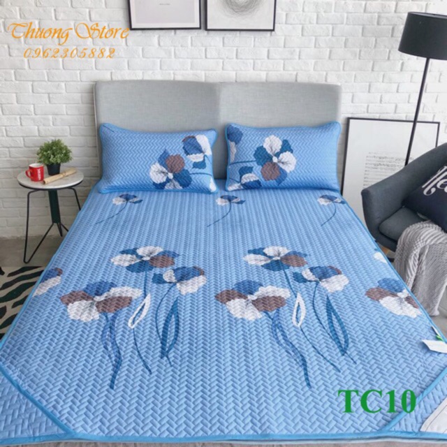 Chiếu điều hoà Tencel - Mẫu hoa xanh - chiếu điều hòa tencel cao cấp
