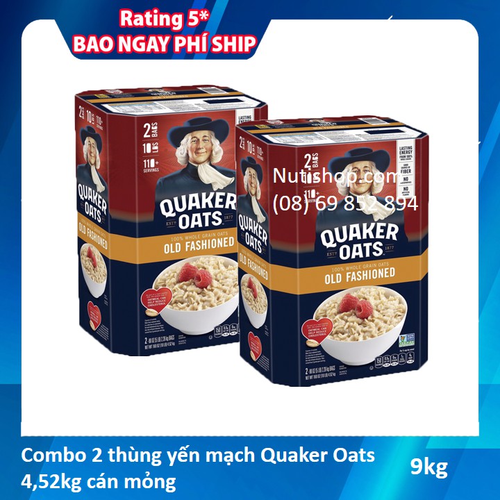 Combo 2 thùng yến mạch Quaker Oats 4,52kg cán mỏng