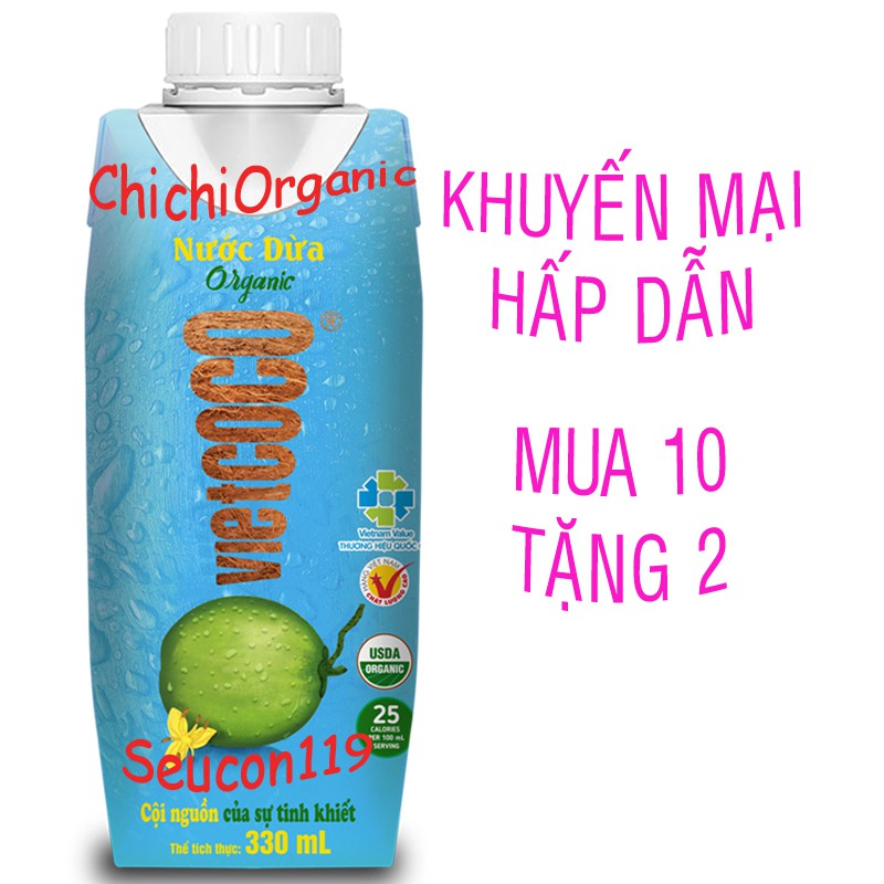 ️NƯỚC DỪA HỮU CƠ VIETCOCO + Xuất xứ: Việt Nam + Chứng nhận hữu cơ: USDA + Dung tích: Hộp 330ml + Hạn sử dụng: 11 / 2020 ĐẶC ĐIỂM: + Nước dừa ít calo và chất béo nhưng lại giàu vitamin, khoáng chất thiết yếu (K, Na, P, Mg, Ca) giúp bổ sung nước và muối khoáng cho cơ thể giàu chất điện giải, không chứa choresterol, bổ sung vitamin và khoáng chất. + Nước dừa giúp tăng miễn dịch cho cơ thể, hỗ trợ giảm huyết áp, giúp tim mạch và hệ tuần hoàn hoạt động khỏe mạnh. Ngoài ra uống nước dừa thường xuyên còn giúp cho da đẹp hơn. CÁCH DÙNG: Uống trực tiếp. Sau khi mở nắp bảo quản ngăn mát tủ lạnh và dùng hết trong 2 ngày.