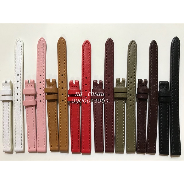 ️Dây đồng hồ da bò Chất liệu: cả mặt trong và mặt ngoài đều là da bò thật, tự nhiên 100% Size dây: 8-8. Đầu dây và đầu khoá bằng nhau 8mmm Dây trơn, ko vân nổi cộm hầm hố. Nhẹ nhàng mà vẫn sang Rất nhiều màu để khách lựa chọn, thích hợp các chị em có thể thay đổi màu theo ý thích Sản phẩm đã kèm khoá. Khoá có 2 màu trắng và vàng, khác chọn màu trong phần phân loại sản phẩm Hàng luôn luôn sẵn Khách đặt hàng vui lòng GHI CHÚ màu sắc hoặc đếm số thứ tự trên bảng màu ở ảnh chính, nến màu khách chọn chưa có trong phân loại Đảm bảo da bò thật 100% Bảo hành 6 tháng về da (bong tróc nổ rộp) ________________________ Hotline: 0906052065 (call, sms, zalo, viber) #daydongho #daydadongho #daydonghoda #daydonghodabo #daydathat #daydonghodathat #daydonghonu