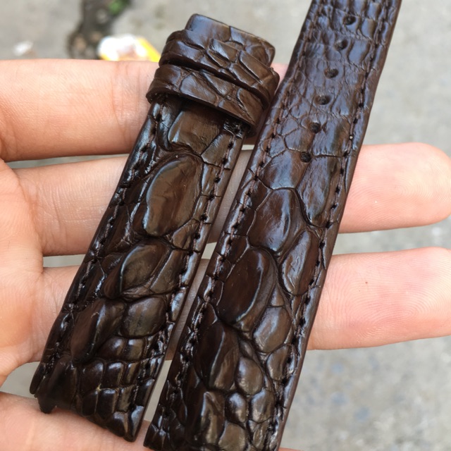 Dây đồng hồ da cá sấu gai tay nâu đậm