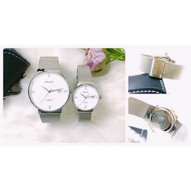 Đồng hồ cặp đôi dây thép lụa Halei Sliver