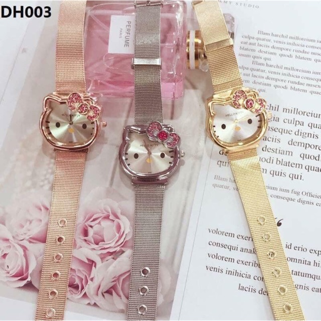 ️#Đồng_hồ_đeo_tay_hello_kitty ĐỒNG HỒ KITTY CHO BÉ - Mấu đồng hồ kitty sang chảnh dây sắt lại sale để chiều lòng các bé. - Mẫu đồng hồ kitty được đính đá kiêu sa mặt đồng hồ 3cm, dây dài 22 cm. Các bé có thể điều chỉnh tuỳ theo từng vòng tay của bé. - Hãy tặng bé như 1 món quà nhỏ động viên bé cố gắng trong học tập và dạy bé biết quý trọng thời gian của mình nhé. - Có 4 màu : bạc,vàng,vàng hồng,đen. - Phú hợp cho các bé từ 5y đến 15y.