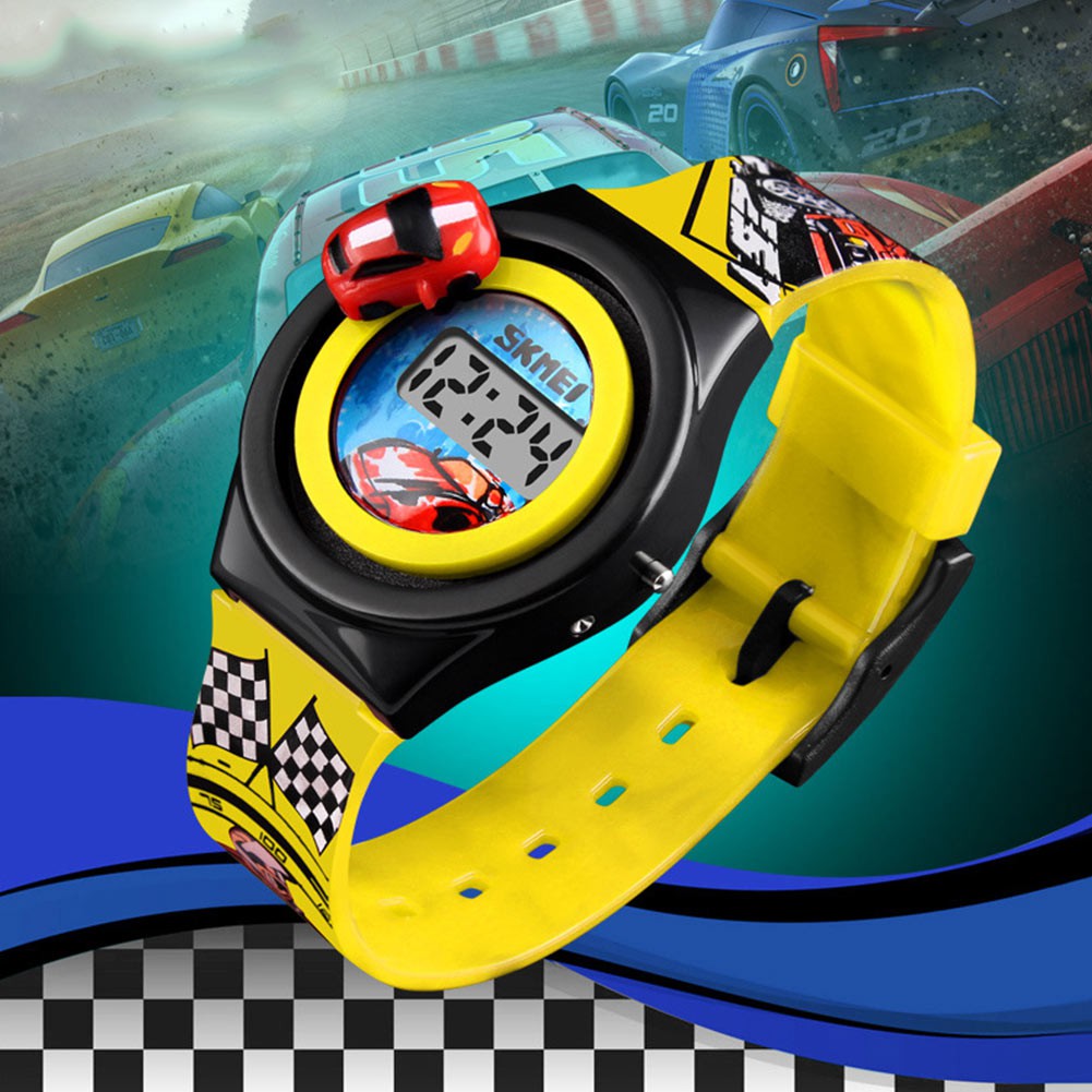 ️Features: Case material: Plastic Strap material: PVC Movement: Electronic Case material: ABS Strap material: PU Mirror material: Resin Plastic bottom cover, plastic buckle Not waterproof Car can rotating Description: 1.Environmental-friendly non-toxic PU material, soft and comfortable, take care of the child's health from the details 2.Wearing a watch can cultivate children’s concept of time and help develop children’s intelligence. 3.Use high quality electronic movement which can provide accurate time for kids,wont be late for any class or date. 4.For kids who like racing, racing track design and rotatable car are very attractive Included: 1x Watch