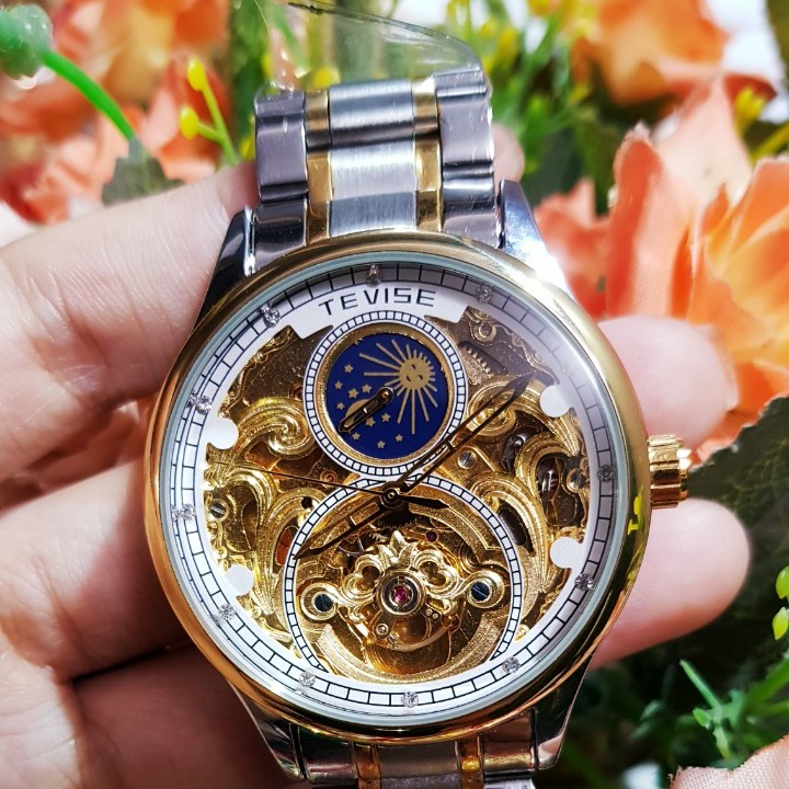 ️➤ Giới thiệu Thương hiệu Đồng hồ TEVISE ➤ Năm 1952 mộtngườithợ đồng hồ nổi tiếng Thụy Sỹ là TevisePhilippe đã sang Hồng Kông và xây dựng nên thương hiệu đồng hồ nổi tiếng mang tênông để cạnh trạnh với các thương hiệu đồng hồ giá rẻ của người bản địa ➤ Thông tin sản phẩm: - Tên sản phẩm: Đồng hồ nam máy cơ Tevise T820A dây da chạy full kim Automatic - Máy cơ Automatic công nghệ Thụy sỹ - Model: T820A - Kích thước mặt đồng hồ: Đường kính 42mm, Dày16mm - Kích thước dây đồng hồ: Rộng 20mm, Dài 24mm. - Chất liệu mặt kính: Kính khoáng cường lực tăng khả năng chống trầyxước - Chất liệu dây: Dây da cao cấp, đẹp và bền - Chống nước: 5ATM - Loại máy: Máy cơ lên cót và tự tích cót, không cần dùng pin. - Số kim: 4 kim đều chạy (3 Kim lớn chỉ Giờ, Phút, Giây) - 01 Kim nhỏ ở Nút chỉ 12giờ hiển thị chế độ 24 giờ. - Hình phía dưới Nút chỉ 12 giờ sẽ di chuyển theo giờ, thể hiện ngày và đêm - Màu sắc: Vàng trắng. - Bảo hành 12 tháng. #donghotevise#donghoco#donghochinhhang#donghothoitrang#donghocaocap#donghochongnuoc#donghothuysy#donghonhat#donghodoi#donghothethao#donghotreem#donghogiare#donghogiatot