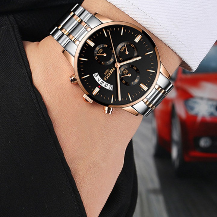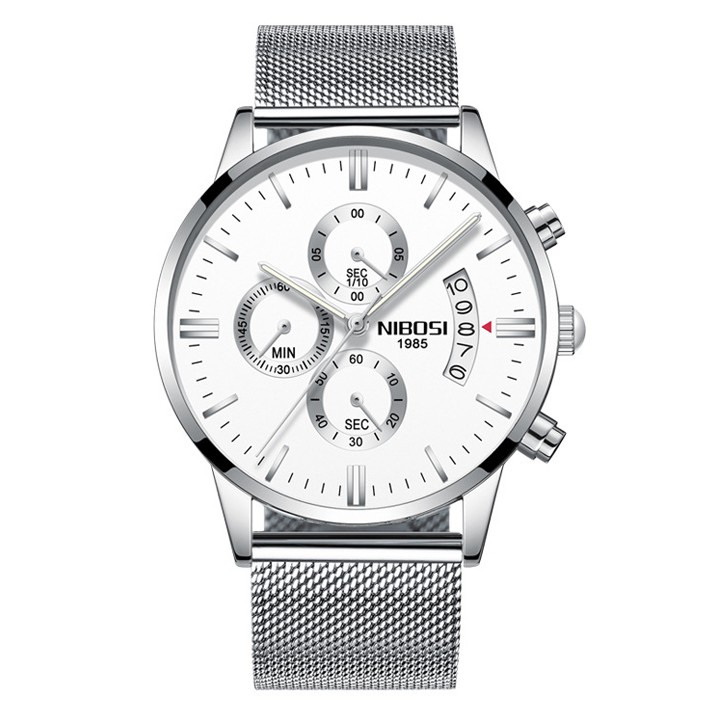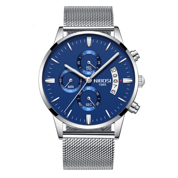 ️THÔNG SỐ KĨ THUẬT: - Thương hiệu: NIBOSI - Mặt kính: saphia chống xước - Chất liệu: Hợp kim thép - Chất liệu dây đeo: Dây thép và dây lưới - Phụ kiện đi kèm: Hộp Đựng + dụng cụ cắt dây - Kiểu máy: Quartz - Dành cho: Nam - Kích thước mặt: 38 mm - Độ Dày: 7.5 mm - Kích thước dây: Dài 180 mm - Độ rộng dây:12 mm - Độ chính xác: ± 20s/mond - Độ chống nước: 3ATM chịu nước tuyệt đối ở mức rửa tay, đi mưa. - (5ATM: Được sử dụng trong bơi lội, lặn sông nước - 10ATM: Được sử dụng trong bơi lội, lặn vùng sông nước, lặn biển) - Chế độ bảo hành: 6 tháng, 1 đổi 1 trong 7 ngày - Sản xuất tại :Hồng Kông ------------------------------------------------ GỢI Ý SỬ DỤNG VÀ BẢO DƯỠNG Nên tránh: - Va chạm và tiếp xúc với chất ăn mòn, nhiệt độ cao hoặc từ trường mạnh. - Sử dụng bất kì dung môi, chất làm sạch, chất tẩy công nghiệp, chất dính, sơn hoặc các chất xịt mỹ phẩm. - Đeo đồng hồ cùng các vòng đeo tay vì dễ tạo vết xước hay làm hỏng mặt đồng hồ. - Chỉnh nút chỉnh giờ khi đồng hồ bị ướt. - Để đồng hồ nơi nhiệt độ thay đổi đột ngột. - Sử dụng, nhấn các nút hoặc cài đặt ở dưới nước. Nên làm: - Làm sạch đồng hồ theo định kỳ vải mềm hơi ẩm để gia tăng tuổi thọ đồng hồ. - Nếu xuất hiện hơi nước ngưng tụ, cần mang đồng hồ đến Trung Tâm Dịch Vụ Khách Hàng của các hãng càng nhanh càng tốt để giảm thiểu hư hỏng bên trong. - Thay pin khi đồng hồ chạy sai giờ hoặc chuyển động kim giây không đều vì rò rỉ điện do pin chết có thể gây ra hỏng hóc nghiêm trọng cho đồng hồ. - Tắt nguồn khi không được sử dụng trong thời gian dài, để kích hoạt công tắc bảo quản nguồn đặc biệt và tránh hao pin. - Đây là chiếc đồng hồ hoàn hảo là món phụ kiện lý tưởng giúp bạn hoàn thiện phong cách của chính mình. Sở hữu thiết kế tính tế, chiếc đồng hồ này lựa chọn hoàn hảo của những quý ông lịch lãm, thể hiện đẳng cấp phái mạnh. #donghonam #donghonamdaykimloai #donghonambusiness #donghonamcaocap #donghonamchinhhang #donghothoitrang #donghodep #donghochongnuoc #donghogiare