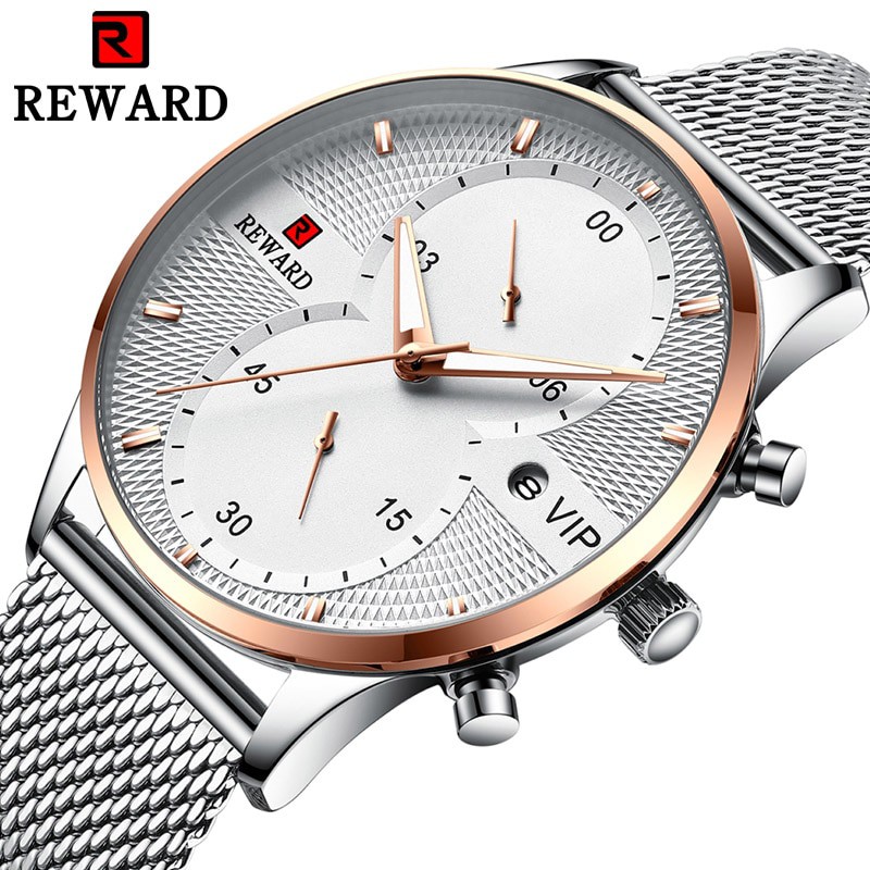 ️◈ THÔNG TIN NỔI BẬT: - Brand: REWARD - Model: KT82001 - Xuất xứ: (Công nghệ Nhật Bản, Lắp ráp tại HongKong) - Kiểu máy: Quartz, máy Nhật - Chống nước: 3 ATM (Có khả năng chống nước sinh hoạt, đi mưa, không nên bơi, ngâm nước) - Chất liệu mặt trước: kính tráng sapphire MĐ1 , chống va đập, chống trầy - Chất liệu dây đeo: Thép không gỉ Dây - Chất liệu: Vỏ hợp kim - Đường kính quay số: 45mm - Độ dày mặt: 12mm - Chiều dài dây đeo: 240mm - Chiều rộng dây đeo: 22mm - Trọng lượng: 101 gram - Kiểu khóa: Gấp khóa - Loại hiển thị: Kim Đồng Hồ Lịch Dạ Quang QUY ĐỊNH BẢO HÀNH ✔ Đổi trả trong 7 ngày nếu hàng bị lỗi do nhà sản xuất như là hết pin, rớt kim, hư khóa, đồng hồ không chạy. ✔ Bảo hành pin và máy trong 12 tháng. Bị bất cứ vấn đề gì bạn cứ inbox shop sẽ luôn tư vấn và hỗ trợ bạn. ◈ BỘ SẢN PHẨM BAO GỒM ✔ Đồng hồ chính hãng 100% ✔ Hộp đồng hồ cực kì đẹp, sang trọng (rất thích hợp làm quà tặng) ✔ Thẻ bảo hành, hướng dẫn sử dụng, bảo quản sản phẩm ◈ NHỮNG CAM KẾT KHI MUA HÀNG CỦA SHOP Chào mừng bạn ghé thăm cửa hàng REWARD VIET NAM: ✔ Phân phối chính thức, cam kết 100% chính hãng REWARD ✔ Cam kết về sản phẩm: Sản phẩm này 100% hàng chính hãng và giống y hệt ảnh, nếu nhận hàng khách không ưng ý hãy liên hệ với shop nhé, shop cam kết sẽ nhận lại hàng và hoàn tiền ngay. ✔ Hoàn 200% nếu phát hiện hàng giả. ✔ Bảo hành 12 tháng. (Bằng hóa đơn điện tử) ✔ Không nhập hàng loại 1 giá rẻ, loại khắc thương hiệu REWARD . (loại này rất khó phân biệt, tỷ lệ lỗi máy, nóng máy hay hao pin sau một thời gian sử dụng rất cao) ✔ Uy tín bán hàng được đặt lên hàng đầu, không kinh doanh chộp giật. ✔ Chúng tôi nói không với hàng giá rẻ kém chất lượng, shop chỉ nhập duy nhập hàng cao cấp, sản phẩm của shop có chất lượng cao. ✔ Tất cả sản phẩm đều được kỹ thuật kiểm tra đạt chuẩn trước khi giao cho khách, bạn hoàn toàn có thể yên tâm sử dụng hay làm quà tặng. Hãy mua thử sản phẩm của chúng tôi, hài lòng hãy mua tặng người thân bạn bè. Nó thật sự là một món quà đặc biệt và quý giá. THÔNG TIN THƯƠNG HIỆU Founded in 2001, the brand, REWARD, has its own extended meaning as feedback and reciprocation, with its founder Mr. Liu’s years of dedication into the watch industry and unique understanding and comprehension of the watch. Since its establishment, the REWARD brand has been adhering to the design style of elegance, simplicity and decency. REWARD watches have stood out in the forefront of fashion, for the spirit of persistent pursuing of perfection and advanced insights into vogue. The almost demanding perseverance in quality and the almost obsessive desire for individuality and freedom make the REWARD wristwatch always have a unique love for innovation, thus making the REWARD wristwatch unique and well-known in the industry.