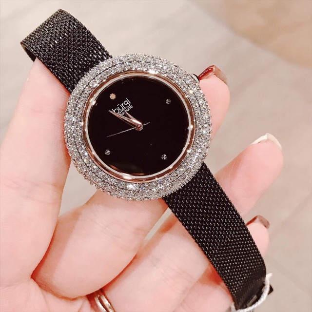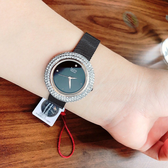 ️Em Burgi mâm xôi này chưa bao giờ hết hot. Phiên bản dây lưới càng làm tăng thêm độ hot của em í. Màu đen lên tay siêu sang nha các nàng *** Cam đoan 100% chính hãng. No fake. Full box *** Thông số kỹ thuật : - Thương hiệu: BURGI - Model Number: BUR220 - Kiểu mặt: Tròn - Khóa: Khóa bấm - Mặt hiển thị: Analog - Chất liệu mặt: Mineral - Đường kính mặt: 36mm - Độ dày case: 8mm - Chất liệu viền ngoài mặt: Crystal - Chất liệu dây: Thép không gỉ - Độ rộng dây: 16mm - Độ dài dây: Tiêu chuẩn vòng tay nữ - Màu dây: Đen - Màu mặt: Đen - Kiểu máy: Quartz (Nhật) - Chịu nước: 3ATM (rửa tay, đi mưa thoải mái) - Bảo hành: 12 tháng - Xuất xứ: Mỹ -------------- Vì là hàng on sale, số lượng ít nên vui lòng inbox để check kho nhé - 0938791001 (ms.Tiên) #donghonu #donghothoitrang #donghoxachtay #burgi