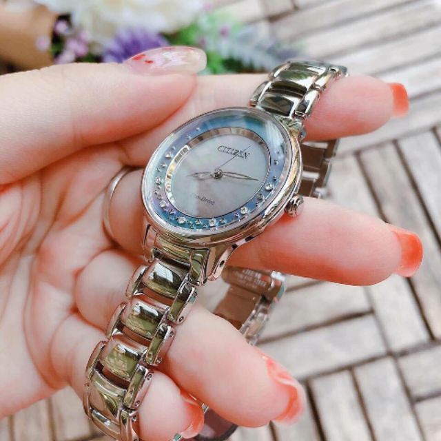 ️Citizen dòng circle of time Diamond EM0380-81N ➥ Silver kết hợp mặt xanh xà cừ ấn tượng 8v kim cương ➥ cẩn quanh mặt ➥ Sử dụng công nghệ độc quyền eco drive pin năng lượng ánh sáng của hãng ?Case 30mm cho nàng tay vừa vs nhỏ ?Chống nước 50m ➥ Giá gốc hơn 12 triệu ➥ Phụ kiện: fullbox, tag ➥ Hàng ở ngoài đẹp hơn hình hen. ➥ Cam đoan ➥ chính hãng. No fake. Bao test -------------- THÔNG SỐ KỸ THUẬT ➥ Thương hiệu: CITIZEN ➥ Model Number: EM0380-81N ➥ Kiểu mặt: tròn ➥ Khóa: Khóa bấm ➥ Mặt hiển thị: Analog ➥ Chất liệu mặt: Sapphire nguyên khối ➥ Kích thước mặt: 30mm (luôn viền) ➥ Độ dày case: 9mm ➥ Chất liệu viền ngoài mặt: Thép không gỉ ➥ Chất liệu dây: Thép không gỉ ➥ Độ rộng dây: 14mm ➥ Độ dài dây: Tiêu chuẩn vòng tay nữ ➥ Màu dây: Silver ➥ Màu mặt: Xám - Xanh xà cừa ➥ Kiểu máy: Quartz (Nhật) ➥ Chịu nước: 5ATM (rửa tay, đi mưa thoải mái) ➥ Bảo hành: 12 tháng ➥ Xuất xứ: Nhật ------------ ➥ Vì là hàng on sale, số lượng ít nên vui lòng inbox để check kho, hãy sms/viber/zalo/inbox: 0938791001 (ms.Tiên) TINGO SHOP CAM KẾT ➥ Tất cả sản phẩm đều là CHÍNH HÃNG 100%, bao check trên mọi phương diện. ➥ Hình ảnh CHÂN THỰC, sản phẩm Y HÌNH (Màu sắc có thể chênh lệch đậm nhạt đôi chút do chụp bằng ĐT và ánh sáng khi chụp) #tingoshop #donghonu #donghothoitrang #donghoxachtay #donghochinhhang #donghocaocap #donghonam #donghosale #donghohanghieu #citizen