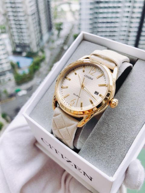 ️Citizen FE6082-08P này xinh quá, dây da trần trám quá sang vs thanh lịch ➥ size 36mm ➥ Mặt khắc vi tính tinh xảo sắc nét ➥ Pin eco- drive năng lượng mặt trời, không lo hết pin lun ➥ Màu be như vầy lên tay nịnh da lắm đó mấy chị ❌❌ Giá gốc tầm 7 triệu, canh sale sốc, fullbox tag chính hãng Mỹ bao test fake đền 10 lần ạ ➥ Phụ kiện: fullbox, pin, tag ➥ Hàng ở ngoài đẹp hơn hình hen. ➥ Cam đoan ➥ chính hãng. No fake. Bao test -------------- THÔNG SỐ KỸ THUẬT ➥ Thương hiệu: CITIZEN ➥ Model Number: FE6082-08P ➥ Kiểu mặt: tròn ➥ Khóa: Khóa cài ➥ Mặt hiển thị: Analog ➥ Chất liệu mặt: Mineral ➥ Kích thước mặt: 36mm (luôn viền) ➥ Độ dày case: 9mm ➥ Chất liệu viền ngoài mặt: Thép không gỉ ➥ Chất liệu dây: Da ➥ Độ rộng dây: 16,2mm ➥ Độ dài dây: Tiêu chuẩn vòng tay nữ ➥ Màu dây: Trắng ➥ Màu mặt: Beige ➥ Kiểu máy: Quartz (Nhật) ➥ Chịu nước: 3ATM (rửa tay, đi mưa thoải mái) ➥ Bảo hành: 12 tháng ➥ Xuất xứ: Mỹ -------------- ➥ Vì là hàng on sale, số lượng ít nên vui lòng inbox để check kho, hãy sms/viber/zalo/inbox: 0938791001 (ms.Tiên) TINGO SHOP CAM KẾT ➥ Tất cả sản phẩm đều là CHÍNH HÃNG 100%, bao check trên mọi phương diện. ➥ Hình ảnh CHÂN THỰC, sản phẩm Y HÌNH (Màu sắc có thể chênh lệch đậm nhạt đôi chút do chụp bằng ĐT và ánh sáng khi chụp) #tingoshop #donghonu #donghothoitrang #donghoxachtay #donghochinhhang #donghocaocap #donghonam #donghosale #donghohanghieu #citizen #ecodrive #donghocitizen #donghocitizenchinhhang