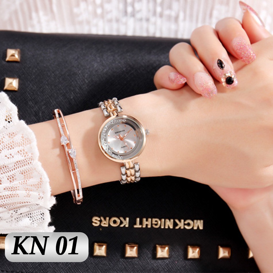 ️"THÔNG SỐ KỸ THUẬT Thương hiệu: KINGNUOS Kiểu máy: Quart Dành cho: Nữ Kích thước mặt:34mm Năng lượng sử dụng: pin Bảo hành:Bảo hành đồng hồ 6 tháng GỢI Ý SỬ DỤNG VÀ BẢO DƯỠNG Nên tránh: - Va chạm và tiếp xúc với chất ăn mòn, nhiệt độ cao hoặc từ trường mạnh. - Sử dụng bất kì dung môi, chất làm sạch, chất tẩy công nghiệp, chất dính, sơn hoặc các chất xịt mỹ phẩm. - Đeo đồng hồ cùng các vòng đeo tay vì dễ tạo vết xước hay làm hỏng mặt đồng hồ. - Chỉnh nút chỉnh giờ khi đồng hồ bị ướt. - Để đồng hồ nơi nhiệt độ thay đổi đột ngột. - Sử dụng, nhấn các nút hoặc cài đặt ở dưới nước. Nên làm: - Làm sạch đồng hồ theo định kỳ vải mềm hơi ẩm để gia tăng tuổi thọ đồng hồ. - Nếu xuất hiện hơi nước ngưng tụ, cần mang đồng hồ đến Trung Tâm Dịch Vụ Khách Hàng của các hãng càng nhanh càng tốt để giảm thiểu hư hỏng bên trong. - Thay pin khi đồng hồ chạy sai giờ hoặc chuyển động kim giây không đều vì rò rỉ điện do pin chết có thể gây ra hỏng hóc nghiêm trọng cho đồng hồ. - Tắt nguồn khi không được sử dụng trong thời gian dài, để kích hoạt công tắc bảo quản nguồn đặc biệt và tránh hao pin. "