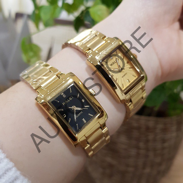 Đồng Hồ Nữ Halei 004 Mặt Vuông Đen Dây Kim Loại Vàng Chính Hãng - Có Video Thật -AUTO STORE