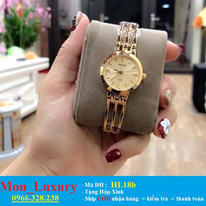 ️Đồng Hồ Nữ Halei Dây Vàng Chống Nước Chống Xước Sản phẩm gồm 2 loại : - Hàng chính hãng : CHỐNG NƯỚC , CHỐNG XƯỚC - Hàng thời trang : KHÔNG chống nước và chống xước ❤ Mô tả Sản phẩm ✅ Loại sản phẩm: Quartz ✅ Kiểu dáng: Nữ +Nữ size mặt 24 ✅ Chất liệu vỏ: Thép không gỉ ✅ Chất liệu mặt trước: Mineral - Kính cứng ( chống trầy khá tốt và chịu lực nhẹ) ✅ Số kim: 3 kim ( Giờ - phút – giây) ✅ Năng lượng sử dụng: Pin ✅ Độ chịu nước: 3ATM, Chịu nước ở mức rửa tay , rửa mặt , đi mưa nhẹ. Trách tiếp xúc với hóa chất như xà phòng, nước rửa chén,nước tẩy, sữa tắm, tránh đi mưa lâu, không mang khi bơi lội ✅ Bảo hành: 6 tháng ( Phí ship đi về Shop chịu nếu hàng lỗi ạ) ❤ MonLuxury Shop : =>>> Các sản phẩm khác tại https://shopee.vn/mon.luxury ✅ Sỉ & lẻ đồng hồ ! Hàng thời trang cao cấp & cực bền . ✅ Bên mình chỉ bán hàng online không có bày gian hàng đâu ạ, vì bán online nên giá cả rất cạnh tranh ạ ➥ Hàng nhập hoặc được lấy từ các xưởng gia công tại Việt Nam , nhập Hongkong và Quảng Châu ✅ Tất cả sản phẩm của shop đều 100% ảnh thật và hàng thật như ảnh ạ ➥ Nếu khách nhận hàng ko ưng vì ko như ảnh hay chất lượng kém , khách cứ inbox shop nhé, shop cam kết sẽ nhận lại hàng và hoàn tiền cho khách ạ ➥ ( Khách nếu lo lắng có thể vào shop mình xem mục đánh giá , feedback ạ ) ❤ SDT : 0966.328.238 ( Call, Message , Zalo) Click vào gian hàng hoặc Add Zalo mình theo số này để nói chuyện chi tiết nhé ( Khách sỉ và CTV add và inbox Zalo mình nhé ) ❤ Ưu đãi đặc biệt cho khách quen : Shop còn có ưu đãi cho khách hàng khi mua hàng lần 2 tại shop : giảm ngay 10-15% giá trị đơn hàng nếu khách đã mua hàng lần 1 và hài lòng với chất lượng sản phẩm của shop, click theo dõi shop và đánh giá 5* cho sản phẩm của shop nhé ! ❤️➥ ❤ Về quy Định Bảo hành: đổi trả trong 7 ngày nếu hàng bị lỗi do nhà sản xuất như là hết pin, rớt kim, hư khóa, đồng hồ không chạy. Bảo hành pin và máy trong 3 tháng . Bị bất cứ vấn đề gì bạn cứ inbox shop sẽ luôn tư vấn và hỗ trợ bạn ❤ ❤ Thời gian giao hàng : từ 1-5 ngày tùy tỉnh , huyện hay nội thành Giao nội tỉnh HCM – HN thường nhanh hơn, tỉnh và huyện thường lâu hơn 1 chút nhé khách. ❤ Về size , dây đồng hồ phù hợp cho khách : Tất cả đồng hồ tại shop khách đều có thể cắt ( gỡ mắt) cho vừa với tay khách nhé . Nếu không tự làm ở nhà được thì khách có thể mang ra quầy đồng hồ gần nhất, thợ sẽ cắt cho khách. Phí tầm 10k VND thôi ạ ❤Tks #dongho #khuyenmai #yeuthich #thoitrangnam #chinhhanh #vongtay #giare #donghocatinh #donghonu #hangtot#donghonam #donghochongnuoc #donghothethao #donghodayda #phụkiện #Valentine #quatangchang #quasinhnhat