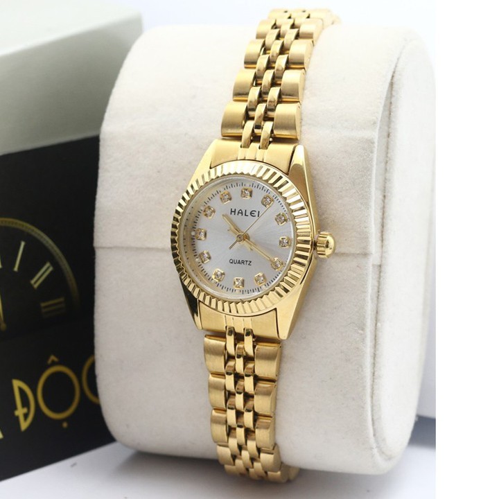 Đồng hồ nữ Halei dây vàng mặt trắng cực đẹp