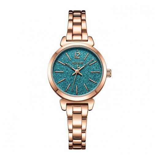 ️Thương hiệu: JULIUS MÃ SẢN PHẨM: JA-1085C (ĐỒNG MẶT XANH) Dành cho: Nữ giới, yêu thích thời trang và phá cách Chất liệu dây: Dây hợp kim cao cấp Chất liệu mặt kính: Mặt kính khoáng cao cấp trong suốt rõ nét, độ cứng cao (chống va đập tốt ở mức sinh hoạt hằng ngày) Kích thước bề mặt: 2,7cm (Mặt tròn) Độ dày: 0,8cm Tổng độ dài đồng hồ: 19cm Độ rộng của dây: 0,8cm Kiểu khóa: Nút gài Chất liệu vỏ máy: Hợp kim mạ ion vàng hồng, sử dụng công nghệ mạ IP chân không tiên tiến giúp đem lại độ sáng bóng và bền màu Máy: Quartz Nhật MIYOTA 2035 (được sản xuất bởi Citizen Nhật Bản) Khả năng chịu nước: Chống thấm nước 3ATM (30m) có thể đi mưa, rửa tay, rửa mặt. Tránh tiếp xúc với môi trường hóa chất như giặt đồ, tấm gội. Bảo hành: 12 tháng, hậu mãi 3 năm chi phí thấp sau bảo hành. Đổi mới nếu bị vô nước hay hư máy do nhà sản xuất. Thay dây miễn phí 1 lần, thay pin trọn đời, mua phụ kiện giá ưu đãi khi có thẻ bảo hành Xuất xứ: Trung Quốc