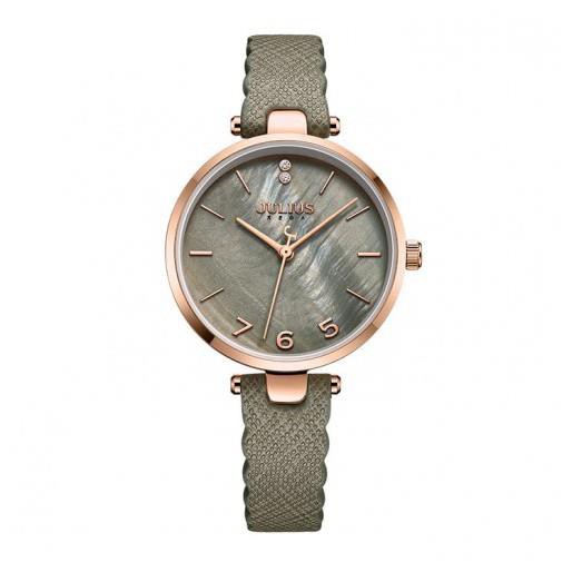 ️Thương hiệu: JULIUS MÃ SẢN PHẨM: JA-1096D (XÁM) Dành cho: Nữ giới, yêu thích thời trang và phá cách CHẤT LIỆU DÂY: DÂY DA GENUINE LEATHER BỀN BỈ Chất liệu mặt kính: Mặt kính khoáng cao cấp trong suốt rõ nét, độ cứng cao (chống va đập tốt ở mức sinh hoạt hằng ngày) Kích thước bề mặt: 3,2cm (Mặt tròn) Độ dày: 0,7cm Tổng độ dài đồng hồ: 22,5cm Độ rộng của dây: 1,1cm Kiểu khóa: Khóa gài Chất liệu vỏ máy: Hợp kim mạ ion vàng hồng, sử dụng công nghệ mạ IP chân không tiên tiến giúp đem lại độ sáng bóng và bền màu Máy: Quartz Nhật MIYOTA 2035 (được sản xuất bởi Citizen Nhật Bản) Khả năng chịu nước: Chống thấm nước 3ATM (30m) có thể đi mưa, rửa tay, rửa mặt. Tránh tiếp xúc với môi trường hóa chất như giặt đồ, tấm gội. Bảo hành: 12 tháng, hậu mãi 3 năm chi phí thấp sau bảo hành. Đổi mới nếu bị vô nước hay hư máy do nhà sản xuất. Thay dây miễn phí 1 lần, thay pin trọn đời, mua phụ kiện giá ưu đãi khi có thẻ bảo hành Xuất xứ: Trung Quốc