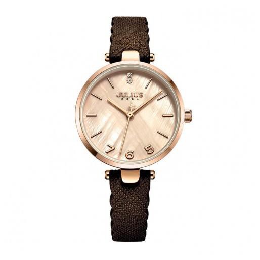 ️Thương hiệu: JULIUS MÃ SẢN PHẨM: JA-1096E (NÂU) Dành cho: Nữ giới, yêu thích thời trang và phá cách CHẤT LIỆU DÂY: DÂY DA GENUINE LEATHER BỀN BỈ Chất liệu mặt kính: Mặt kính khoáng cao cấp trong suốt rõ nét, độ cứng cao (chống va đập tốt ở mức sinh hoạt hằng ngày) Kích thước bề mặt: 3,2cm (Mặt tròn) Độ dày: 0,7cm Tổng độ dài đồng hồ: 22,5cm Độ rộng của dây: 1,1cm Kiểu khóa: Khóa gài Chất liệu vỏ máy: Hợp kim mạ ion vàng hồng, sử dụng công nghệ mạ IP chân không tiên tiến giúp đem lại độ sáng bóng và bền màu Máy: Quartz Nhật MIYOTA 2035 (được sản xuất bởi Citizen Nhật Bản) Khả năng chịu nước: Chống thấm nước 3ATM (30m) có thể đi mưa, rửa tay, rửa mặt. Tránh tiếp xúc với môi trường hóa chất như giặt đồ, tấm gội. Bảo hành: 12 tháng, hậu mãi 3 năm chi phí thấp sau bảo hành. Đổi mới nếu bị vô nước hay hư máy do nhà sản xuất. Thay dây miễn phí 1 lần, thay pin trọn đời, mua phụ kiện giá ưu đãi khi có thẻ bảo hành Xuất xứ: Trung Quốc