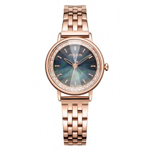 ️Thương hiệu: JULIUS Mã sản phẩm: JA-959C JU1209 (Đồng đen) Dành cho: Nữ, sinh viên, nhân viên văn phòng, doanh nhân… Chất liệu dây: Dây thép không gỉ Chất liệu mặt kính: Mặt kính khoáng cao cấp trong suốt rõ nét, độ cứng cao (chống va đập tốt ở mức sinh hoạt hàng ngày), lăng kính 3D lấp lánh Kích thước bề mặt: 3cm (Mặt tròn) Độ dày: 0,8cm Tổng độ dài đồng hồ: 18,5cm Độ rộng của dây: 1,1cm Kiểu khóa: Nút gài Chất liệu vỏ máy: Hợp kim mạ ion vàng hồng, sử dụng công nghệ mạ IP chân không tiên tiến giúp đem lại độ sáng bóng và bền màu Máy: Quartz Nhật MIYOTA 2035 (sản xuất bởi Citizen Nhật Bản) Khả năng chịu nước: Chống thấm nước 3ATM (30m) có thể đi mưa, rửa tay, rửa mặt. Tránh tiếp xúc với môi trường hóa chất như giặt đồ, tấm gội. Bảo hành: 12 tháng, hậu mãi 3 năm chi phí thấp sau bảo hành. Đổi mới nếu bị vô nước hoặc lỗi do nhà sản xuất. Thay dây miễn phí 1 lần, thay pin trọn đời, mua phụ kiện giá ưu đãi khi có thẻ bảo hành
