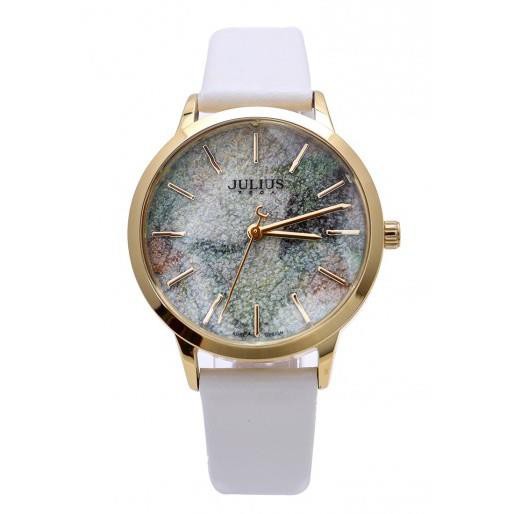 ️Thương hiệu: JULIUS Mã sản phẩm: JA-977B JU1223 (Trắng) Dành cho: Nữ, sinh viên, nhân viên văn phòng, doanh nhân… Chất liệu dây: Dây da Genuine Leather bền bỉ Chất liệu mặt kính: Mặt kính khoáng cao cấp trong suốt rõ nét, độ cứng cao (chống va đập tốt ở mức sinh hoạt hàng ngày), lăng kính 3D tạo hình ngôi sao 6 cánh lấp lánh nổi bật Kích thước bề mặt: 3,5cm (Mặt tròn) Độ dày: 0,9cm Tổng độ dài đồng hồ: 22,5cm Độ rộng của dây: 1,9cm Kiểu khóa: Khóa gài Chất liệu vỏ máy: Hợp kim mạ ion vàng, sử dụng công nghệ mạ IP chân không tiên tiến giúp đem lại độ sáng bóng và bền màu Máy: Quartz Nhật MIYOTA 2039 (được sản xuất bởi Citizen Nhật Bản) Khả năng chịu nước: Chống thấm nước 3ATM (30m) có thể đi mưa, rửa tay, rửa mặt. Tránh tiếp xúc với môi trường hóa chất như giặt đồ, tấm gội. Bảo hành: 12 tháng, hậu mãi 3 năm chi phí thấp sau bảo hành. Đổi mới nếu bị vô nước hoặc lỗi do nhà sản xuất. Thay dây miễn phí 1 lần, thay pin trọn đời, mua phụ kiện giá ưu đãi khi có thẻ bảo hành Xuất xứ: Trung Quốc Hàng chính hãng. chất lượng cao.
