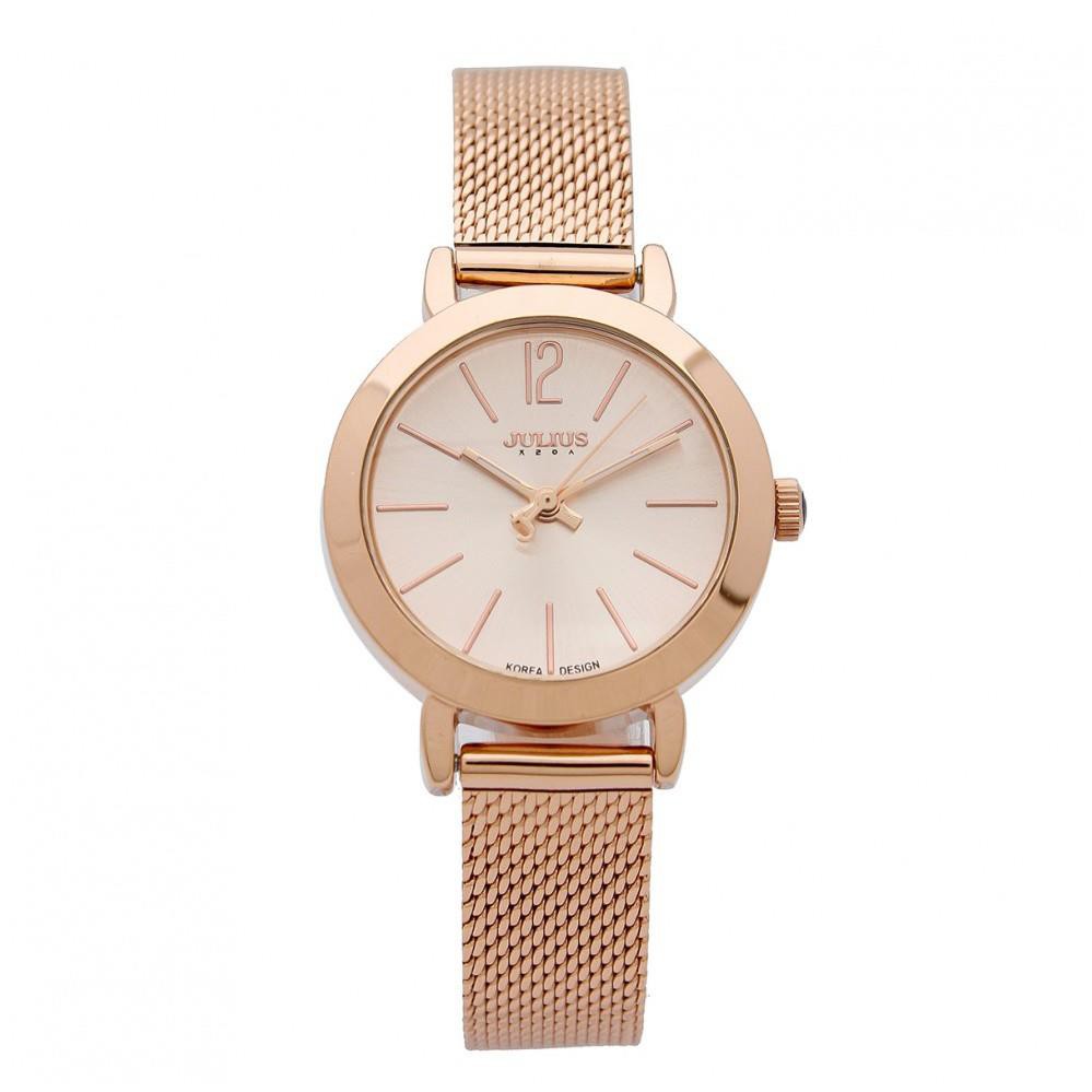 ️THÔNG SỐ SẢN PHẨM Thương hiệu: JULIUS Mã sản phẩm: JA-732C JU970 (Đồng) Dành cho: Nữ, sinh viên, nhân viên văn phòng, doanh nhân… Chất liệu dây: Dây thép không gỉ Chất liệu mặt kính: Mặt kính khoáng cao cấp trong suốt rõ nét, độ cứng cao (chống va đập tốt ở mức sinh hoạt hàng ngày) Kích thước bề mặt: 2,8cm (Mặt tròn) Độ dày: 0,9cm Độ rộng của dây: 1,2cm Kiểu khóa: Nút gài Chất liệu vỏ máy: Hợp kim mạ ion vàng hồng, sử dụng công nghệ mạ IP chân không tiên tiến giúp đem lại độ sáng bóng và bền màu Máy: Quartz Nhật MIYOTA (sản xuất bởi Citizen Nhật Bản) Khả năng chịu nước: Chống thấm nước 3ATM (30m) có thể đi mưa, rửa tay, rửa mặt. Tránh tiếp xúc với môi trường hóa chất như giặt đồ, tấm gội. Bảo hành: 12 tháng, hậu mãi 3 năm chi phí thấp sau bảo hành. Đổi mới nếu bị vô nước hoặc lỗi do nhà sản xuất. Thay dây miễn phí 1 lần, thay pin trọn đời, mua phụ kiện giá ưu đãi khi có thẻ bảo hành. Xuất xứ : trung quốc