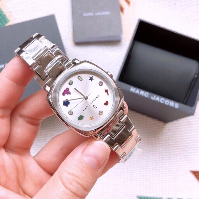 ️☄️☄️☄️ Hàng hot nhất năm nay nhé quý ➥ Đường kính mặt ĐH 34mm ➥ Mặt đồng hồ được thiết kế bắt mắt với các icon siêu tinh tế và độc đáo, màu silver cực bắt sáng ⛔️ Hàng có sẵn chỉ 2 cái duy nhất ?????➥ Khách nào lanh tay hơn thì hốt trước nhé ➥ Hàng ở ngoài đẹp hơn hình hen ? *** Cam đoan 100% chính hãng. No fake. Full box *** Thông số kỹ thuật : ➥ Thương hiệu: Marc Jacobs ➥ Model Number: MJ3548 ➥ Kiểu mặt: Vuông ➥ Khóa: Khóa bấm ➥ Mặt hiển thị: Analog ➥ Chất liệu mặt: Mineral ➥ Kích thước mặt: 34mm ➥ Độ dày case: 8mm ➥ Chất liệu viền ngoài mặt: Thép không gỉ ➥ Chất liệu dây: Thép không gỉ ➥ Độ rộng dây: 18mm ➥ Độ dài dây: Tiêu chuẩn vòng tay nữ ➥ Màu dây: Silver ➥ Màu mặt: Silver ➥ Kiểu máy: Quartz (Nhật) ➥ Chịu nước: 5ATM ➥ Bảo hành: 12 tháng ➥ Xuất xứ: Mỹ -------------- Vì là hàng on sale, số lượng ít nên vui lòng inbox để check kho nhé - sms/viber/zalo: 0938791001 (ms.Tiên) #donghonu #donghothoitrang #donghoxachtay #donghochinhhang #donghocaocap #donghonam #donghosale #donghohanghieu #marcjacobs
