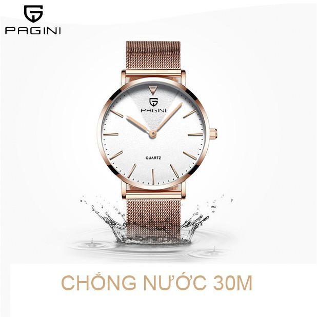 ️MÔ TẢ SẢN PHẨM ➡ THIẾT KẾ ĐẾN TỪ Ý Vỏ ngoài của chiếc đồng hồ PAGINI được gia công bằng chất liệu hợp kim thép chống gỉ mạ vàng tạo nên vẻ sang trọng, quý phái. Dây titanium siêu mỏng – rất bền màu ➡ VẬN HÀNH BỀN BỈ Từ năm 2012 đến nay nhà máy lắp ráp PAGINI đã đầu tư và nâng cấp thêm nhiều trang thiết bị hiện đại cùng với công nghệ sản xuất lắp ráp tiên tiến của Nhật Bản giúp chiếc đồng hồ PAGINI tinh tế hơn, bền bỉ hơn. ➡ ĐỒNG HỒ PAGINI – Phong Cách Sang Trọng Những chiếc đồng hồ PAGINI làm tôn lên vẻ đẹp cổ điển theo phong cách Ý, mang lại vẻ quyến rũ từ cái nhìn đầu tiên. Những đặc quyền mà chỉ phái đẹp mới có được! ----------------------------------------------------------------------------------- ➡Đồng hồ PAGINI là sự kết hợp tuyệt vời của những công nghệ sản xuất đồng hồ hàng đầu : - Công nghệ mạ PVD vàng hiện đại (PVD = Physical Vapor Deposition - Bốc hơi lắng đọng Vật lý) cho độ bền gấp 3 lần phương pháp mạ thông thường và vẻ sáng bóng tự nhiên và đặc biệt không bị phai màu - Sử dụng thép không rỉ cao cấp 904L cho độ bền, độ cứng và sáng bóng gấp 3 lần loại thép không rỉ thông thường - Lắp ráp hoàn toàn thủ công dưới bàn tay của các nghệ nhân cho độ chính xác hoàn hảo - Máy Quartz công nghệ thụy sỹ - Mặt kính sapphire cao cấp cho khả năng chống va đập, chống trầy xước tương đối hoàn hảo - Đồng hồ thiết kế kín cho khả năng chống nước tuyệt vời,lên tới 3atm được thử nghiệm khắt khe với máy tạo áp suất trước khi xuất xưởng ----------------------------------------------------------------------------------- ➡ THÔNG TIN SẢN PHẨM: ✔Tình trạng: Mới 100% ✔Loại máy: máy Quartz công nghệ thụy sỹ ✔Thương hiệu: PAGINI ✔Chức năng : chronograph ✔Kích thước bề mặt: Đường kính 32 mm ✔Bảo hành: 02 năm ✔Độ dày mặt: 8mm ✔Xuất xứ: Japan ✔Độ dày dây đeo: 2mm ✔Nguồn gốc: Chính hãng ✔Độ rộng dây đeo: 20mm ✔Chất liệu dây: Thép cao cấp 904L ✔Trọng lượng: 65g ✔Chất liệu mặt: Kính sapphire ✔Độ chống nước: 3ATM ✔Năng lượng sử dụng: pin ✔Phong cách : Quyến rũ – Sang trọng ----------------------------------------------------------------------------------- ➡ CÔNG TY CAM KẾT: Tất cả những sản phẩm công ty bán ra đều có chế độ bảo hành cho khách hàng. Tất cả những gì chúng tôi mô tả về sản phẩm này đều được khách hàng kiểm chứng khi nhận hàng ( Mở hàng ra kiểm tra thỏa mái ) Nên hoàn toàn yên tâm nhé ✔ 1 đổi 1 trong 1 tháng nếu có lỗi do nhà sản xuất. ✔ Bảo hành 2 năm chính hãng PAGINI ✔ Giao hàng miễn phí nhanh tới tận nhà trên Toàn quốc. ✔ Chỉ thanh toán sau khi nhận được hàng và ưng ý với sản phẩm và mua hàng. ✔ Thử sản phẩm tại nhà và không mất bất cứ chi phí nào sản phẩm của chúng tôi không làm hài lòng khách hàng. CHÚNG TÔI SẼ BỒI THƯỜNG 200% NẾU SẢN PHẨM KHÔNG ĐÚNG CHẤT LƯỢNG