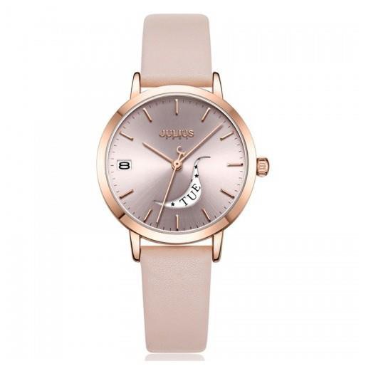 ️Thương hiệu: JULIUS Mã sản phẩm: JA-1076C (Hồng) Dành cho: Nữ giới, yêu thích thời trang và phá cách Chất liệu dây: Dây da Genuine Leather bền bỉ Chất liệu mặt kính: Mặt kính khoáng cao cấp trong suốt rõ nét, độ cứng cao (chống va đập tốt ở mức sinh hoạt hằng ngày) Kích thước bề mặt: 3,2cm (Mặt tròn) Độ dày: 0,9cm Tổng độ dài đồng hồ: 22cm Độ rộng của dây: 1,4cm Kiểu khóa: Khóa gài Chất liệu vỏ máy: Hợp kim mạ ion vàng hồng, sử dụng công nghệ mạ IP chân không tiên tiến giúp đem lại độ sáng bóng và bền màu Máy: Quartz Nhật MIYOTA 2035 (được sản xuất bởi Citizen Nhật Bản), có lịch ngày, thứ tiện lợi Khả năng chịu nước: Chống thấm nước 3ATM (30m) có thể đi mưa, rửa tay, rửa mặt. Tránh tiếp xúc với môi trường hóa chất như giặt đồ, tấm gội. Bảo hành: 12 tháng, hậu mãi 3 năm chi phí thấp sau bảo hành. Đổi mới nếu bị vô nước hay hư máy do nhà sản xuất. Thay dây miễn phí 1 lần, thay pin trọn đời, mua phụ kiện giá ưu đãi khi có thẻ bảo hành Xuất xứ: Trung Quốc Hàng chính hãng. cao cấp.