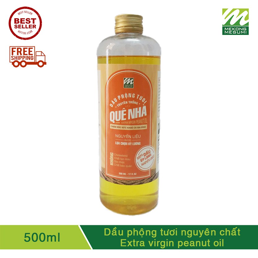 ️- Giới thiệu dầu phộng tươi nguyên chất ép lạnh Mekông Megumi Dầu phộng hay còn gọi là dầu lạc của Mekông Megumi được trích ly 100% hoàn toàn từ hạt đậu phộng còn tươi chưa qua rang ở nhiệt độ cao. - Ưu điểm và sự khác biệt của dầu phộng tươi Mekông Megumi: + Mùi thơm nhẹ dễ chịu của nguyên liệu đậu phộng tươi còn 2 lớp vỏ không biến đổi gen. Không quá thơm như dầu phộng tinh luyện được làm từ hạt đậu phộng rang trên 200 độ C. + Màu dầu phộng thành phẩm là màu vàng sáng óng. + Không bị lắng cặn hoặc có thể lắng cặn tự nhiên 1 ít, nhưng không ảnh hưởng chất lượng. Độ ẩm thấp trong giới hạn quy định lưu hành của Bộ QL ATTP TPHCM cấp phép. Giúp dầu phộng bảo quản lâu hơn, chất lượng ổn định. + Dầu phộng nguyên chất thành phẩm sẽ không còn đường và tạp chất. + Dầu phộng tươi nguyên chất của Mekông Megumi sẽ giúp bạn dùng được cho cả nấu ăn và làm đẹp. + Được sử dụng công nghệ ép lạnh tuyệt đối, hoàn toàn không sinh nhiệt độ khi ép ra dầu. Đây là phương pháp ép tốt nhất cho dầu đạt chuẩn ép lạnh. + Khi lọc được chất dầu tinh khiết nhất thì bảo quản dầu mới được lâu mà không cần dùng chất bảo quản, cũng như các phụ gia tạo màu, mùi. + Khi sản xuất được dầu phộng nguyên chất tinh khiết, chưa qua nhiệt độ thì chất lượng dầu phộng sẽ là tốt nhất, giữ được trọn vẹn dinh dưỡng, nguyên tố vi lượng thiết yếu như sắt, kẽm, đặc biệt là vitamin K, E rất dễ biến mất khi chỉ tiếp xúc nhẹ với nhiệt độ. - Thông số sản phẩm dầu phộng tươi nguyên chất Calories...............884 Kcal Carbohydrate...............0 g Total Fat...................100 g Proteins...........................0 Vitamin E..............17.5 mg Zinc.......................0.01 mg Cholesterol...................0 g Selenium..................0 mcg Điểm khói............230 độ C - Cách dùng dầu phộng nguyên chất Mekông Megumi: + Trẻ em: bắt đầu ăn dặm, 8 tháng đến 12 tuổi (pha 0,5 - 1 muỗng cà phê/ lần, ngày 2 lần). + Trộn 1 muỗng cà phê (5ml) dầu phộng nguyên chất vào thức ăn đã nấu chín trộn đều trước khi ăn. + Trẻ em trên 1 tuổi: tùy vào lượng thức ăn mà dùng dầu sao cho phù hợp. -> Dầu đậu phộng nguyên chất Mekông Megumi thích hợp với các món xào nhẹ, nấu ở nhiệt độ thấp, đặc biệt giàu chất dinh dưỡng khi sử dụng với các món trộn sống, salad hoặc thêm vào món ăn sau khi tắt bếp. - Cách bảo quản dầu phộng tươi nguyên chất Mekông Megumi: + Bảo quản dầu phộng ở nhiệt độ thường - nhiệt độ phòng sẽ dùng được trong 2 năm. + Quý khách có thể bảo quản dầu trong ngăn mát tủ lạnh để tăng thời hạn sử dụng lâu hơn (~3 năm) nếu thích. + Tránh tiếp xúc trực tiếp với ánh nắng mặt trời và những nơi có nhiệt độ cao hoặc có khả năng sinh nhiệt độ cao.