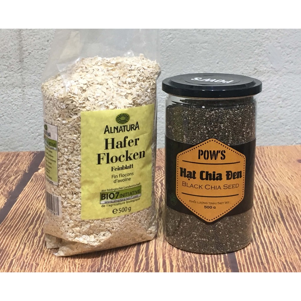 ️CAM KẾT HOÀN TIỀN 100% NẾU HÀNG KÉM CHẤT LƯỢNG Sản phẩm nhập khẩu chính hãng, có hóa đơn. - Hạt chia với xuất xứ Peru. - Trọng lượng 500gr - HSD: 5/2022 - Yến mạch Hafer Flocken của Đức với trọng lượng 500gr, HSD: 8/2020 Công dụng của chia: - Hàm lượng chất béo Omega-3 & Omega-6 cao - Giàu chất đạm, chất xơ, chất chống oxy hóa - Canxi, sắt và các vitamin khoáng chất khác... * Chính vì vậy, hạt chia có tác dụng: + Cân bằng lượng đường trong máu + Ngăn chặn đột quỵ + Tốt cho phụ nữ mang bầu: giảm căng thẳng, tăng cường tuyến sữa + Tốt cho sức khỏe tim mạch + Tác dụng giảm cân + Giảm cholesterol trong máu + Cân bằng huyết áp + Chống táo bón, tốt cho tiêu hóa + Cung cấp năng lượng dồi dào + Giúp trẻ phát triển một cách toàn diện Công dụng yến mạch: + Yến mạch cán vỡ Hafer Flocken 500gr là thực phẩm giàu dưỡng chất được sản xuất và nhập khẩu 100% từ Đức, hương vị thơm ngon, kích thích vị giác giúp bé ăn ngon và nhiều hơn, đồng thời hỗ trợ tăng sức đề kháng và phát triển trí thông minh vượt trội khiến các bà mẹ cũng an tâm sử dụng cho con yêu và cả gia đình. + Được sản xuất ở dạng nguyên chất, không cần trải qua quy trình sơ chế tách vỏ hay rửa nước nào cả, rất bổ dưỡng và cần thiết để sử dụng trong gia đình + Yến mạch là một trong những loại thực phẩm lành tính và ít gây dị ứng nhất, chứa thành phần dinh dưỡng cao, không trộn lẫn các hóa chất gây nguy hại đến sức khỏe + Dùng như bữa ăn sáng giàu dinh dưỡng hoặc đan xen vào các bữa ăn nhẹ để bổ sung thêm các khoáng chất dinh dưỡng thiết yếu cho bé + Dùng được cho mọi đối tượng, đặc biệt rất tốt cho trẻ em ở lứa tuổi ăn dặm và những người cao huyết áp, tim mạch, hay muốn làm đẹp da. + Bổ sung protein giúp cung cấp năng lượng, nâng cao sức khỏe, phát huy trí não và tăng cường thể chất tối ưu + Nguồn chất xơ dồi dào giúp cải thiện hệ tiêu hóa, không gây thừa cân, ngăn ngừa chứng táo bón và các bệnh về đường ruột, Hàm lượng vitamin B giúp bổ sung dưỡng chất để trí não phát triển và duy trì cơ thể khỏe mạnh, dẻo dai + Giàu hàm lượng các khoáng dưỡng chấtbao gồm sắt, magie, canxi, photpho… giúp làm đẹp da, phát triển hệ xương, tốt cho trí não, bảo vệ tim mạch, và tăng cường hệ miễn dịch
