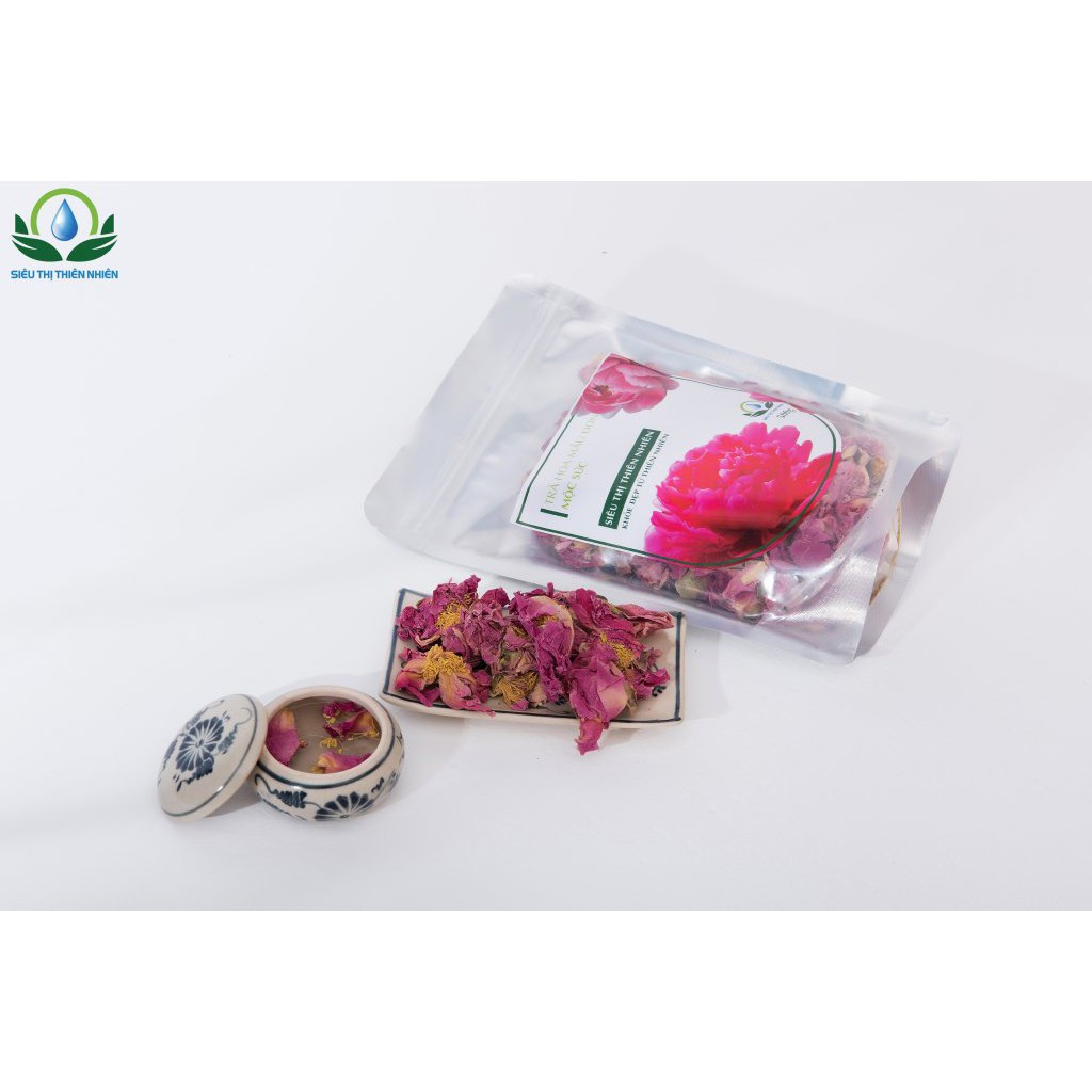 ️[GIÁ GỐC] - Trà Hoa Mẫu Đơn Mộc Sắc Sấy Khô Tự Nhiên Xuất hiện từ cách đây hơn 4000 năm tuy nhiên không phải ai cũng biết hết được công dụng thần kỳ của Trà Hoa Mẫu Đơn. Mẫu đơn bì hay còn được gọi là cánh hoa mẫu đơn chứa rất nhiều paeoniflorin một hoạt chất đặc biệt chống viêm khớp, thấp khớp. Không chỉ vậy đây cũng như một loại thảo dược giúp hạ huyết áp và bảo vệ gan. Sau đây Siêu Thị Thiên Nhiên sẽ chia sẻ với các bạn những điều thú vị nhất của loại Trà Hoa Mẫu Đơn này nhé. Công dụng của Trà Hoa Mẫu Đơn Chống co thắt cơ trơn Chống viêm, thấp khớp An thần, hạ sốt, giảm đau Chống loét dạ dày, chống dị ứng và chống co giật Bảo vệ gan trước những hóa chất độc hại Giúp cải thiện quá trình điều trị rối loạn nhận thức, suy giảm trí nhớ ở người già Chống siêu vi khuẩn, những tác nhân bên ngoài môi trường Giảm biến chứng của bệnh tiểu đường Điều trị bệnh trầm cảm Chữa viêm da, dị ứng, mụn nhọt Quy cách đóng gói Khối lượng tịnh: 100g, 200g, 500g, 1kg Nguyên liệu: Trà Hoa Mẫu Đơn được làm từ 100% hoa mẫu đơn được Siêu Thị Thiên Nhiên tuyển chọn và được sấy khô tự nhiên dựa trên dây truyền hiện đại. Không sử dụng hóa chất và chất bảo quản, an toàn cho sức khỏe. Cách dùng Trà Hoa Mẫu Đơn Chuẩn bị: Hoa Mẫu Đơn sấy khô của Siêu thị thiên nhiên, nước sôi 90 độ trở lên, với tỷ lệ mỗi 200ml tương ứng với 10 gram hoa khô. Uống nóng: Tráng bình và hoa bằng nước sôi khoảng 30s đến 1 phút sau đó đổ bỏ lần nước này để khỏi trà đắng nhé. Bắt đầu trút thêm nước sôi sau 5 phút rồi thưởng thức. Uống lạnh: Lọc bỏ phần xác trà đi và lấy phần nước, thêm đá hoặc cho vào ngăn mát tủ lạnh khoảng 20 phút và thưởng thức. Chú ý là nếu thêm đá thì thay đổi tỉ lệ nước và hoa là 200ml nước tương ứng với 15 gram hoa khô nhé! Với vị thơm từ hoa mẫu đơn, bạn có thể thưởng thức ngay hoặc thêm đường phèn hoặc mật ong để tăng thêm tính hấp dẫn của trà nhé. Cách bảo quản Bảo quản nơi khô ráo và thoáng mát Buộc chặt miệng túi kín sau khi dùng Hạn sử dụng 12 tháng Xuất xứ tại: Cơ sở siêu thị thiên nhiên – Hà Nội – Việt Nam. #thaomocgt
