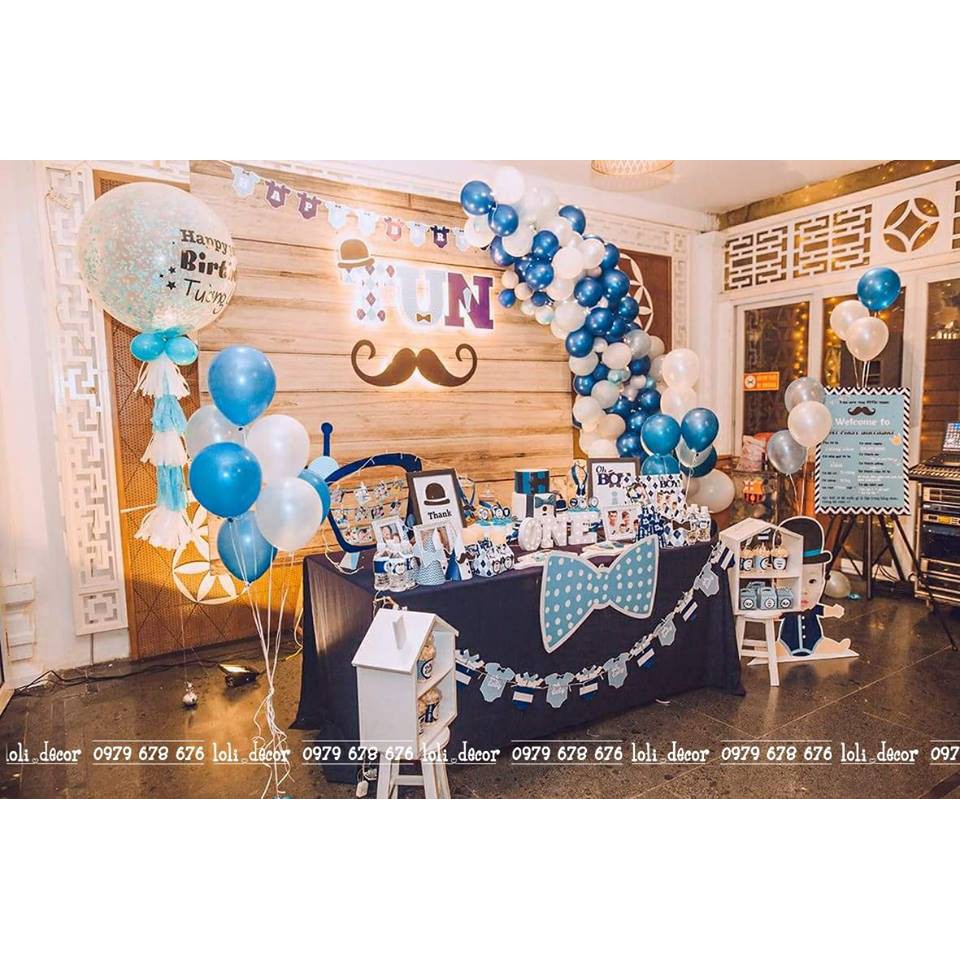 (GIÁ ƯU ĐÃI) SET SINH NHẬT BẰNG GIẤY chủ đề Xanh Navy đậm Trắng - Little Man - Hàng độc quyền thương hiệu Loli Decor