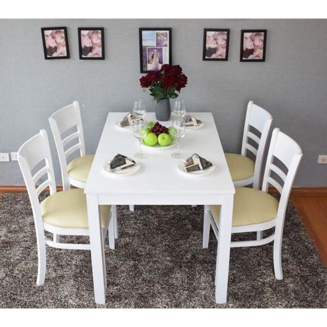 ️Màu: White - Walnut Kích thước bàn: 1200 x 750 x 730 (mm) Kích thước ghế: 460 x 440 x 810 (mm) Chất liệu: gỗ cao su tự nhiên Sơn AC cao cấp SX Theo tiêu chuẩn: xuất Hàn Quốc