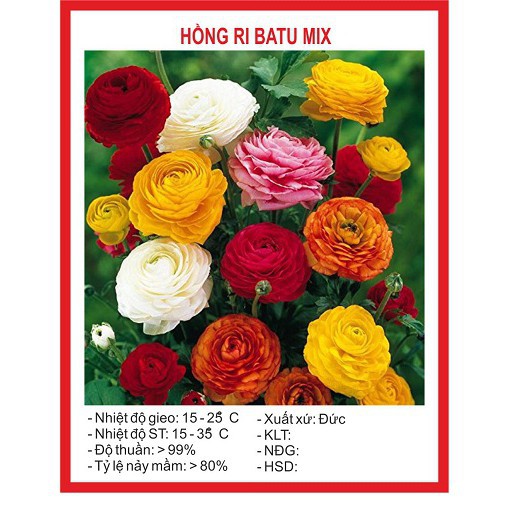 ️Hãy bấm THEO DÕI shop để cập nhật những sản phẩm yêu thích với giá hấp dẫn! - SHOP Hạt giống - Mua sắm thả ga, giá cả tốt nhất ! - Giao hàng TOÀN QUỐC - Thanh toán khi nhận hàng COD ---------------------------------------------- * GIỚI THIỆU SẢN PHẨM - Số hạt/gói: 5 Hạt - Tỷ lệ nẩy mầm: >80% - Mùa Vụ: Thu Đông Xuân - Nhiệt độ gieo: 15 - 30 độ - Nhiệt độ ST: 15 - 35 độ - Thời gian thu hoạch: 80-90 ngày ---------------------------------------------- * HƯỚNG DẪN TRỒNG ĐƠN GIẢN 1. Chuẩn bị vật dụng - chất trồng: -Chậu nhỏ (hoặc chậu to nếu sau này không muốn thay chậu nữa) hoặc khay ươm nếu gieo số lượng nhiều. Dù bạn dự tính trồng thẳng trong chậu hoặc sẽ chuyển xuống đất trồng thì cũng nên uơm hạt trong chậu trước vì dễ quản lí đô ẩm, sâu bệnh, dinh dưỡng... -Thuốc trừ nấm. -Đất sạch giàu dinh dưỡng + vỏ trấu hoặc xơ dừa, mụn xơ dừa, (đã hoai mục), phân gà, phân bò... Thông thường tỷ lệ phổ biến như sau: Đất sạch - vỏ trấu, xơ dừa, phân gà, bò = 7 : 3 - Hoặc có thể dùng đất sạch đóng bao sẵn – mua ở cửa hàng 2. Tiến hành gieo hạt:. -Chất trồng sau khi trộn đều, chúng ta cho vào chậu hoặc khay uơm. -Phun thuốc trừ nấm lên mặt chất trồng (bước này khá quan trọng), tốt nhất phun liên tục 2-3 lần để thuốc thấm xuống sâu hơn. (nếu mua đất sạch thì không cần) -Ngâm hạt:Ngâm hạt trong nước 3 sôi 7 lạnh trong 5-7h -Sau khi ngâm hạt dùng giấy ướt (có thể dùng giấy vệ sinh gấp lại thành nhiều lớp) để ủ hạt (cho hạt vào giấy, và gấp đôi chúng lại), sau đó cho vào 1 hộp nhỏ, rồi đậy kín lại và cho vào chỗ mát mẻ (luôn để giấy ở trạng thái ẩm cao). Để như vậy đến khi hạt nhú mầm xanh(tùy hạt mà từ 5-15 ngày) thì mang gieo ra đất đã được làm tơi xốp – nhớ làm nhẹ tay kẻo gẫy mầm nhé! (thường áp dụng cho các loại hạt yêu cầu kĩ thuật xíu:hạt giống hoa các loại, dâu tây, nho, hồng ri ba tư, nho gỗ, tử đằng... 3. Chăm sóc sau khi gieo hạt: -Nhiệt độ:tùy loại mà nhiệt độ để nẩy mầm dao động từ khoảng 20-30oC. Không cần quá chú trọng đến vấn đề này vì chỉ cần che lưới là ổn rồi. -Độ ẩm của đất trồng:luôn đảm bảo độ ẩm cho đất, không được để đất bị khô hoặc quá ẩm -Đặt chậu hoặc khay uơm ở nơi có ánh sáng khuyếch tán (che lưới lan màu đen loại 50%), vì hạt cần ánh sáng để nẩy mầm, nhưng nếu cường độ quá mạnh sẽ đốt cháy hạt và làm khô chất trồng nhanh chóng -Thay chậu hoặc chuyển vào đất trồng: khi cây con đã lớn (thân đủ cứng cáp, rễ mạnh...), chúng ta có thể chuyển qua chậu to hơn hoặc chuyển xuống đất trồng trực tiếp. Nếu trước đó đã gieo hạt trong chậu to thì không cần sang chậu. ----------------------------- #Câycảnhvàhạtgiống #caycanhvahatgiong #hatgiong #hạtgiống #hoahongribatu #hoahồngribatư