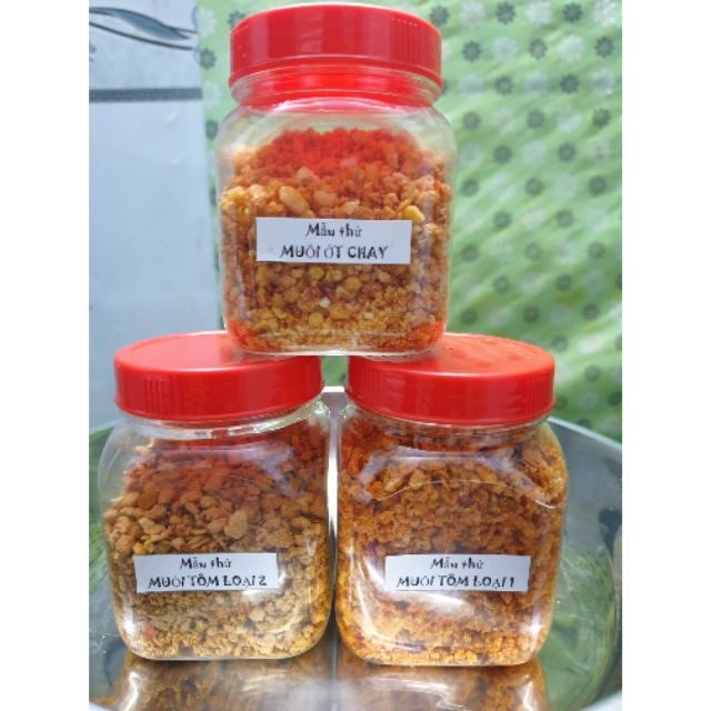 - muối tôm dạng hạt loại 1 ( vị cay mặn ngọt vừa ăn, dùng ăn bánh tráng)