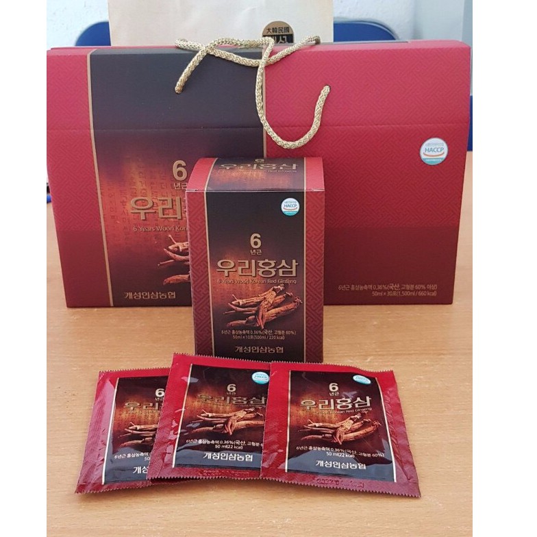 ️[MẪU MỚI] Nước hồng sâm Nonghyup Woori Hàn Quốc, Hộp 30 gói x 50ml CAM KẾT : - Hàng Chuẩn - Giá Cạnh Tranh Nhất - Hoàn Tiền 100% Nếu SP Ko Đúng Mô Tả - Tuyển Đại Lý & CTV Toàn Quốc [ Hotline : 096 105 8818 ] -------------------------------------------------------------------------------- [MẪU MỚI] Nước hồng sâm Nonghyup Woori Hàn Quốc, Hộp 30 gói x 50ml Xuất xứ : Hàn Quốc Quy cách : Hộp 30 gói x 50ml Hướng dẫn sử dụng - Nước hồng sâm Nonghyup 100% nguyên chất được dùng trực tiếp bằng cách uống. - Người lớn sử dụng hàng ngày, mỗi ngày 1 gói dung tích 60ml - Trẻ em dưới 15 tuổi nên dùng nửa liều người lớn, ngày ½ gói. ?Shop cam kết bán hàng chuẩn, nguồn gốc xuất xứ rõ ràng và Shop luôn có quà tặng phù hợp dành cho khách mua hàng tại SHOP. ?➥ NẾU KHÁCH HÀI LÒNG THÌ ĐÁNH GIÁ 5 SAO GIÚP SHOP NHA, ĐỂ SHOP CÓ THÊM ĐỘNG LỰC PHỤC VỤ KHÁCH LÂU DÀI.? Hotline 096 105 8818 #nuochongsam #nuocsam #nuochongsamNonghyup #Nonghyup #nuochongsamnguyenchat #nhansam #samhanquoc #samnamlinhchi