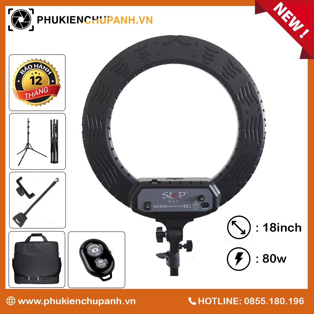 ️THÔNG SỐ SẢN PHẨM #Đèn_livestream 80w-18inch – Thương hiệu: SLOP – Công suất lớn nhất 80w – Kích thước vòng LED: 18 inch – 2 núm điều chỉnh sáng – Hỗ trợ 3 nguồn ánh sáng: ánh sáng trắng, vàng và trung tính – Chân đế có thể điều chỉnh độ cao, khung thép mạ tĩnh điện, đường kính lớn và chắc chắn. – Công nghệ LED 2019 mới nhất giúp tăng tuổi thọ lên đến 40000 giờ BỘ SẢN PHẨM BAO GỒM 1/ Đèn Led livestream 18 inch – 80w 2/ Remote chụp hình bluetooth 3/ Giá đỡ điện thoại 4/ Dây cáp nguồn 5/ Tripod 6/ Hộp carton và túi vải MÔ TẢ #đèn_hỗ_trợ_livestream 80w #Sản_phẩm_đa_năng Đèn led Livestream 80w – 18inch là thiết bị hỗ trợ hoàn hảo cho mọi nhu cầu livestream bán hàng, makeup, làm đẹp tại các spa, phục vụ chụp hình tại studio hay các shop chụp sản phẩm. Thiết kế thông minh tích hợp đèn trợ sáng, chân đế và kẹp điện thoại tạo điều kiện tối ưu khi bạn tiến hành công việc. Đèn led livestream siêu chắc chắn, giúp việc livestream, quay video, chụp ảnh dễ dàng hơn bao giờ hết. Ngoài ra, bạn hoàn toàn có thể tùy biến điều chỉnh các bộ phận như độ rủ của đèn, độ cao hay cường độ ánh sáng theo yêu cầu. #Chế_độ_ánh_sáng_thông_minh Thiết bị đèn led livestream hỗ trợ việc quay video, chụp ảnh, makeup hay livestream với chất lượng ánh sáng chất lượng cao. Nút điều chỉnh sáng cho phép tùy biến độ sáng ở ba mức trắng, vàng và trung tính. Sản phẩm tạo ra phần nền hoàn hảo với màu sắc đẹp lung linh, bắt mắt mà vẫn vô cùng chân thực. Khung đèn được đặc biệt làm theo hình chiếc nhẫn, giúp bạn vẫn được cung cấp đủ sáng ầm không bị chói mắt khi nhìn thẳng. Hơn nữa, khả năng quay 180 độ cho phép bạn tạo ra nhiều góc chiếu sáng đa dạng hơn. #Công_năng_tuyệt_vời Ngoài ra, đèn led livestream 80w – 18inch hoàn toàn có thể thay thế đèn chiếu sáng đặc dụng tại các spa, tiệm nail hay studio chụp ảnh. Chỉ cần đầu tư một lần là có thể sử dụng cho mọi công việc của bạn. THÔNG TIN BẢO HÀNH – Sản phẩm cam kết chính hãng với tiêu chuẩn chất lượng cao – Bảo hành 12 tháng chính hãng, hỗ trợ lỗi 1 đổi 1