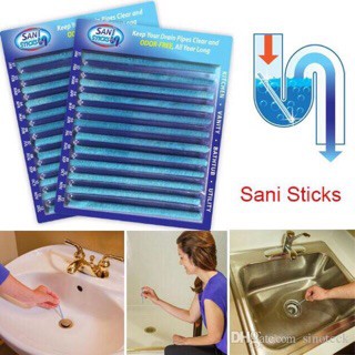 ️- Làm sạch dầu mỡ, vi khuẩn và các chất cặn bã, các mảng bán cững đầu ở ống thoát nước - Dọn dẹp sạch sẽ, thổi bay những mùi hôi khó chịu và nồng nắc của cống nước, bồn rửa. - Sani sticks làm giảm thiểu 90% nguy cơ về tắc đường dẫn ống nước. - 1 vỉ có 12 thanh, dùng trong 1 năm mỗi thanh cho 1 đường ống.