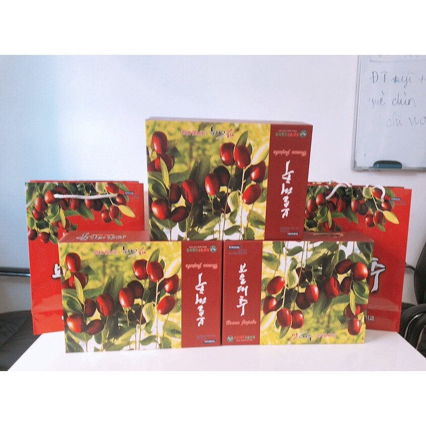 ️Hồng táo đỏ khô /-rose /-rose /-rose Hộp sang chảnh lam qua biếu :apple::apple::apple::apple::apple: Táo đỏ Hàn Quốc :apple::apple::apple::apple::apple: - Táo đỏ còn có tên gọi khác là hồng táo được nhập từ Hàn Quốc, màu đỏ đẹp, thơm nhẹ và có vị ngọt đậm tự nhiên :yum::yum::yum: - Trong đông y, táo đỏ là loại thực phẩm rất giàu dinh dưỡng, Bổ sung sắt cho THAI PHỤ, chống lão hóa da cho, tăng cường nội tiết tố phụ nữ tuổi tiền mãn kinh. - Nghiên cứu đã chứng minh táo đỏ có lợi cho dạ dày, bổ sung khí huyết và giúp nhuận phổi --> THAI NHI sẽ phát triển rất tốt nếu BÀ BẦU khí huyết đầy đủ - Chứa nhiều vitamin C và E giúp da của ng sử dụng, đặc biệt là các mẹ bầu tươi sáng và đẹp hơn, chống lại sự hình thành các vết nám, sạm khi mang bầu và sinh con. - Chứa nhiều protein, lipit, các loại axit amin, vitamin A, B2, C, P... sắt, canxi, photpho, nhôm..và chất xơ dồi dào giúp điều trị quá trình táo bón - Tốt cho những người bị mỡ máu - Bổ gan, tăng cường cơ bắp, hạ huyết áp, an thần dễ ngủ, hạn chế sự phát triển của tế bào ung thư, tiêu đờm, giảm ho, cải thiện dinh dưỡng cơ tim - Tăng cường trí nhớ ... Hạn sử dụng : 2021 Xuất xứ : Hàn Quốc