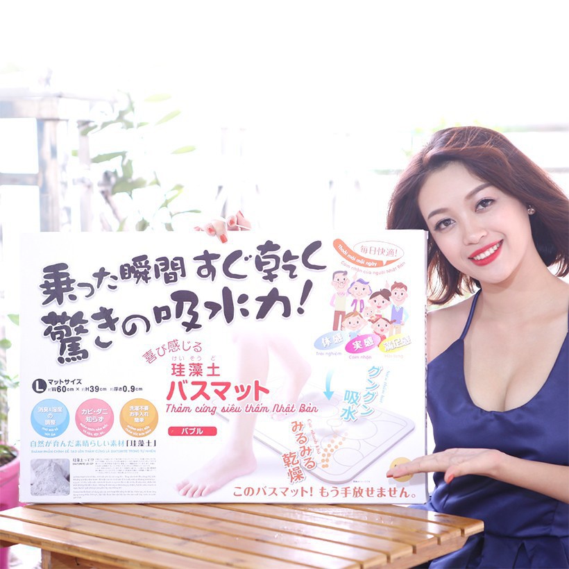 ️- Tự động làm sạch: Không cần giặt và thảm cứng siêu thấm sẽ tự động khô trong điều kiện phòng khô thoáng. + Thảm cứng siêu thấm tự động thấm hút và thải lượng ẩm vào không khí giúp bề mặt luôn khô ráo. Khi thảm bẩn, đánh bằng một lượt giấy nhám rồi dùng khăn vải mềm lau sạch. Cũng có thể dùng khăn ẩm để lau bề mặt thảm. - Ngăn ngừa nấm mốc và Rận, Rệp, Bọ + Diatomite có tính chất mài mòn nhẹ và hấp thu nước nên có khả năng hấp thụ chất béo từ các lớp bên ngoài của khung xương sáp côn trùng, khiến chúng mất nước. + Diatomite cũng được sử dụng để giúp kiểm soát và loại bỏ gián trong nhà. Lợi dụng các đặc tính này của diatomite mà người ta sử dụng làm thuốc diệt côn trùng khi nó chưa qua xử lý nhiệt. Khác với thảm bằng chất liệu vải hay len luôn bị ẩm tạo môi trường tốt cho bọ rệp trú ngụ, thảm diatomite rất khô thoáng bề mặt và trơn nhẵn khiến bọ rệp không có chỗ trú ngụ, sinh sôi. Công dụng của Thảm cứng siêu thấm Nhật Bản: – Dùng để thấm khô bàn chân khi ra khỏi nhà tắm. Khả năng siêu thấm hút từ thành phần diatomite giúp chân ráo nước ngay khi đứng trên mặt thảm. Nước ở bàn chân sẽ thấm hoàn toàn vào thảm cứng. Khả năng thấm hút tới 50% – 60% trọng lượng thảm. Ngay sau đó, độ ẩm sẽ được tự động giải phóng vào không khí và bề mặt sẽ tự khô