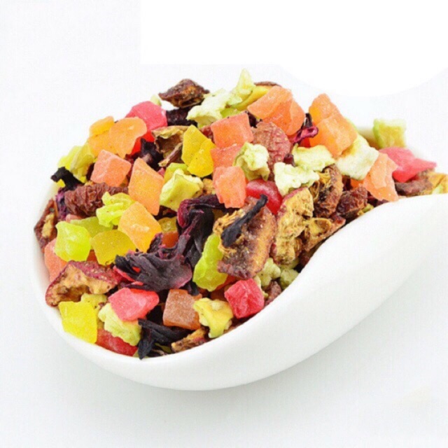 ️TRÀ HOA QUẢ BALI được gọi theo tên một loại thức uống phổ biến ở quần đảo Bali (Indonesia): cocktail trái cây. Món thức uống này được pha chế khá đơn giản bằng cách ngâm trái cây đã sấy khô và xắt hạt lựu trong nước sôi để ngậm nước, tạo ra một loại nước trái cây chua ngọt thơm nồng mùi hương dễ chịu từ các loại hoa trái. Trước đó, người ta ngâm một số loại trái cây trong nước đường rồi mới sấy, nên thành phẩm tạo ra còn có thể dùng như mứt sấy khô, khi dùng pha trà không cần thêm đường. QUI CÁCH 0,5Kg/1Kg bằng túi Zip NGUỒN GỐC: Việt Nam. HẠN SỬ DỤNG: 12 tháng CÔNG DỤNG: Pha trà, pha các nước detox hoa quả giải khát. ĐẶC ĐIỂM SẢN PHẨM: Trà gồm: Hoa hibicus khô (10%), quả sơn tra (10%), các trái cây nhiệt đới (chuối, đào, kiwi, táo, dứa, dâu, xoài, chanh…) sấy khô (80%). BẢO HÀNH: Đổi trả miễn phí với trường hợp bao bì hư hỏng, bong tróc và đổi trả khi sản phẩm không đúng như cam kết về sản phẩm và cam kết bán hàng của shop. CAM KẾT VỀ SẢN PHẨM: Trà sấy khô sạch, không chất bảo quản, không phụ gia, đảm bảo an toàn vệ sinh thực phẩm. CAM KẾT BÁN HÀNG: + Các bạn nhận được hàng chất lượng chính hãng lấy trực tiếp từ cơ sở sản xuất + Chúng tôi xin chịu đền bù 200% nếu như trà sấy khô bị ẩm mốc hư hỏng không đạt tiêu chuẩn. + Bán hàng bằng niềm tin đó là mục tiêu mà chúng tôi hướng đến. Vì thế chất lượng sản phẩm được chúng tôi đặt lên hàng đầu HƯỚNG DẪN SỬ DỤNG: Có nhiều cách pha trà, mình xin trình bày cách đơn giản nhất cho bạn: Bước 1: Cho ít Trà khoảng 10g đến 15g vào bình, tráng bình + trà trong 30s rồi bỏ nươc đầu đi. Bước 2: Rót nước sôi ở nhiệt độ 90 độ trở lên khoảng 200ml, ngâm trà trong khoảng thời gian từ 2-5 phút là có thể uống được nha bạn Muốn uống lạnh:lọc bỏ hoa trà, lắc đều, cất trong ngăn mát tủ lạnh hoặc bỏ thêm đá rồi uống. Chú ý là nếu thêm đá thì thay đổi tỉ lệ nước và hoa là 200ml nước tương ứng với 20-25gr trà ĐẶC BIỆT: Bạn có thể ăn cả xác trà trái cây. Trà có vị thơm tự nhiên của hoa quả,vị chua ngọt dịu thanh, bạn có thể pha ít mật ong, hoặc cỏ ngọt, hoặc đường phèn, hoặc cam thảo nếu thích muốn tăng hương vị TÁC DỤNG: Ngăn ngừa ung thư Giúp tiêu hóa tốt, có tác dụng tốt cho dạ dày, làm giảm chứng đầy hơi Tăng sức đề kháng Thanh nhiệt Giảm stress Điều hòa huyết áp, Ngăn ngừa hấp thụ chất béo, giảm mỡ thừa cho vóc dáng thon gọn và làn da mịn màng, tươi trẻ. Trà hoa quả Bali giúp cung cấp các loại vitamin A, B1, C, D,... và khoảng chất cho cơ thể, giúp trẻ lâu và giảm nguy cơ ung thư, tăng cường hệ miễn dịch và chức năng tiêu hóa. Trà này còn mang đến cho bạn một giấc ngủ ngon hơn chất lượng hơn, giảm stress BẢO QUẢN: để nơi khô ráo, thoáng mát, tránh ẩm thấp và ánh sáng trực tiếp.