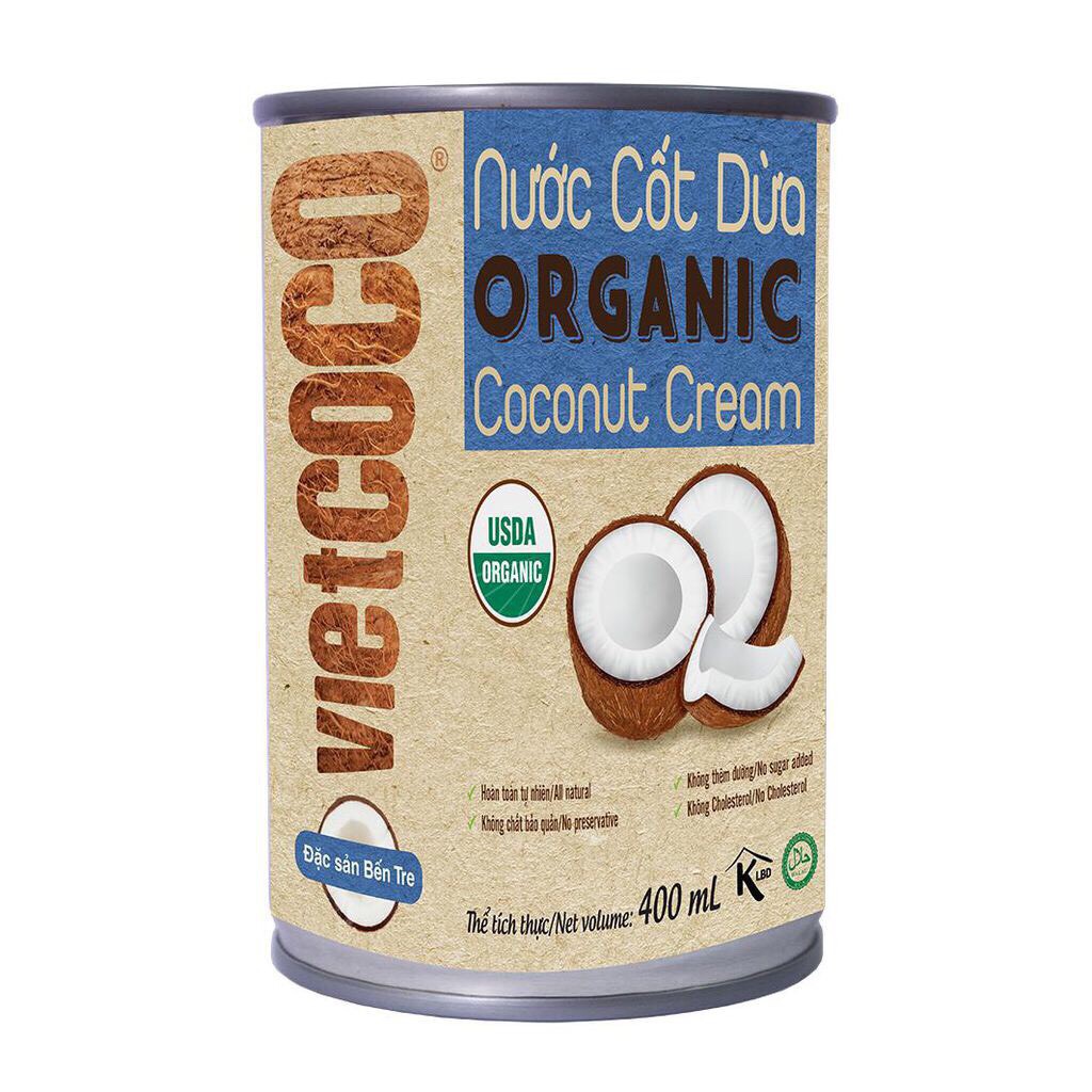 ️NƯỚC CỐT DỪA HỮU CƠ VIETCOCO + Xuất xứ: Việt Nam + Chứng nhận hữu cơ: USDA + Dung tích: Lon 400ml + Hạn sử dụng: 02/2021 ĐẶC ĐIỂM: + Nước cốt dừa hữu cơ Vietcoco được sản xuất từ cơm dừa tươi, vị béo ngậy, thơm ngon, giàu khoáng chất và các vitamin giúp tăng cường sức đề kháng, thanh nhiệt, làm đẹp da, tốt cho hệ tim mạch + Nước cốt dừa dạng lon tiện dụng, dễ dàng sử dụng và bảo quản + Nước cốt dừa không chứa hóa chất hay chất bảo quản, đảm bảo an toàn cho sức khỏe người tiêu dùng. Sử dụng: dùng chế biến các món cà ri, canh súp, sinh tố, chè kem... Lắc đều trước khi sử dụng. Bảo quản lạnh và sử dụng trong 24h sau khi mở nắp.