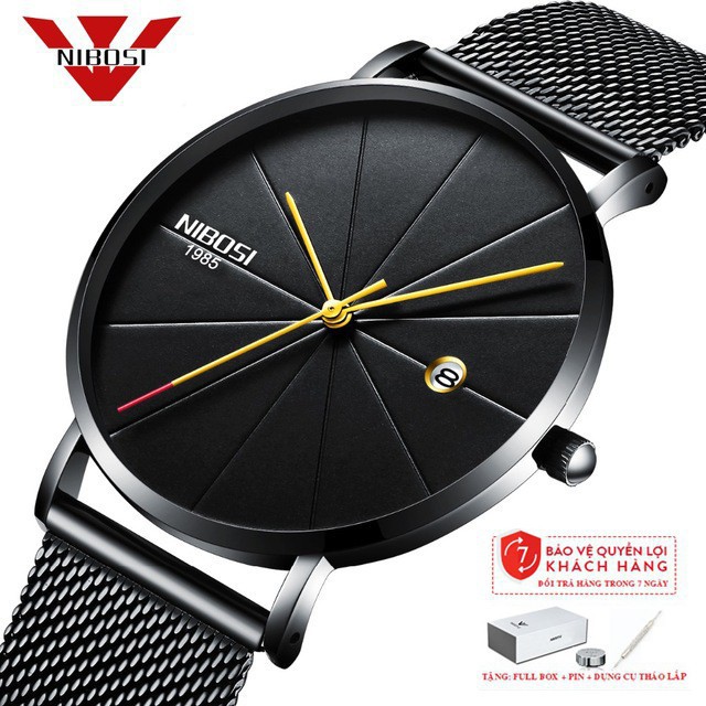️➥ Khuyến mãi: Khi mua sản phẩm này được tặng kèm hộp cao cấp + pin đồng hồ dự phòng + Miễn phí vận chuyển ?️ LƯU Ý VỀ SẢN PHẨM NIBOSI: ✳ Hiện nay trên thị trường dòng sản phẩm NIBOSI đang rất hot nên xuất hiện hàng nhái rất nhiều vì vậy quý khách hết sức cẩn thận, Chúng tôi sẽ hướng dẫn bạn phân biệt hàng nhái bằng bài viết dưới đây: ✅ Hàng nhái loại dây ghép mặt, vật liệu rẻ tiền rất nhẹ, không phải dây inox chống gỉ, các mắt nối trên dây lỏng lẻo nên đeo không chắc tay. ✅ Hàng chính hãng khi bán ra luôn phải kèm hộp có khắc chữ NIBOSI và phải có giấy chứng nhận hoặc thẻ bảo hành chính hãng Quốc Tế do NSX NIBOSI cấp. ✅ Các nơi bán hàng nhái hoặc hàng kém chất lượng, dù bán rẻ hơn vài chục nghìn nhưng vào phần đánh giá các bạn sẽ thấy rất nhiều đánh giá xấu, thực chất dòng này nếu đúng chính hãng thì rất tốt. ✅ Các kim nhỏ hoạt động rất độc đáo chỉ những dòng đắt tiền mới có ạ (chạy Full Kim) ✅ Kiểu dáng năng động và lịch lãm, Vạch chia rõ ràng và chi tiết từng milimets ✅ Vỏ máy bằng thép chống oxy hóa hiệu quả ✅ Mặt kính Mineral có độ cứng cao, ngăn chặn trầy xước hiệu quả ✅ Không có bất kì 1 tì vết hay lỗi nhỏ nào trên sản phẩm ✅ Cam kết giao sản phẩm 100% giống như hình ảnh và mô tả ?️ THÔNG TIN SẢN PHẨM ✅ Thương hiệu: NIBOSI (HongKong) ✅ Kích thước mặt: 40mm (Chuẩn size Châu Á) ✅ Kích thước dây: 20mm ✅ Độ dày mặt: 8.7mm ✅ Kiểu Máy: Chạy pin ✅ Chất liệu dây: Thép không gỉ ✅ Khả năng chịu nước: 3ATM (rửa tay, đi mưa đều ok... Nên tránh tiếp xúc với hóa chất như xà phòng, nước tẩy rửa, không mang khi bơi lội... Của bền tại người mà) ✅ Bảo hành: 12 tháng ?️ BỘ SẢN PHẨM BAO GỒM ✅ Đồng hồ chính hãng 100% ✅ Hộp Fullbox cực kì sang trọng (Rất phù hợp làm quà tặng) ✅ Giấy và sách hướng dẫn sử dụng ✅ Tặng kèm pin trị giá 30k ?️ NHỮNG CAM KẾT KHI MUA HÀNG CỦA SHOP ✅ Cam kết về mua hàng: Đặt hàng --> Kiểm tra hàng --> Thanh toán tiền trực tiếp. Hình thức mua hàng cổ điển mà ai cũng có thích. Tiền trao cháo múc . ✅ Cam kết về sản phẩm: Sản phẩm này 100% hàng chính hãng và giống y hệt ảnh, nếu nhận hàng khách không ưng ý hãy liên hệ với shop nhé, shop cam kết sẽ nhận lại hàng và hoàn tiền ngay. ✅ Về size đồng hồ: Shop có tặng kèm dụng cụ tháo dây để các bạn có thể tự tháo bớt mắt đeo cho vừa tay, khỏi phải tốn tiền ra tiệm. ✅ Về Pin đồng hồ: Tất nhiên đồng hồ nào hoạt động 1 thời gian cũng sẽ hết pin nhưng Shop luôn tặng kèm pin dự phòng, khi hết chỉ cần mang ra tiệm nhờ thợ thay, họ chỉ lấy công 10k thôi, nếu không có sẵn pin tốn tới 50k đó ạ. ✅ Đổi trả hàng thoải mái: sản phẩm còn nguyên vẹn, chưa cắt tháo dây thì shop đều cho đổi trả dù sau 3 ngày nhận hàng, bất kể lý do gì. Đổi trả 7 ngày do lỗi nhà sản xuất. #nibosi #nibosichinhhang #donghonibosi