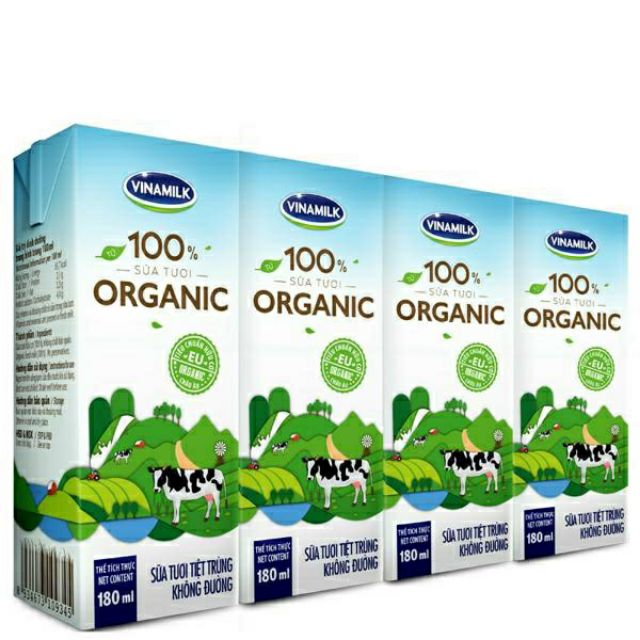 1 lốc Sữa tiệt trùng Organic Vinamilk 180ml/ hộp- Hsd: Tháng 11/2019