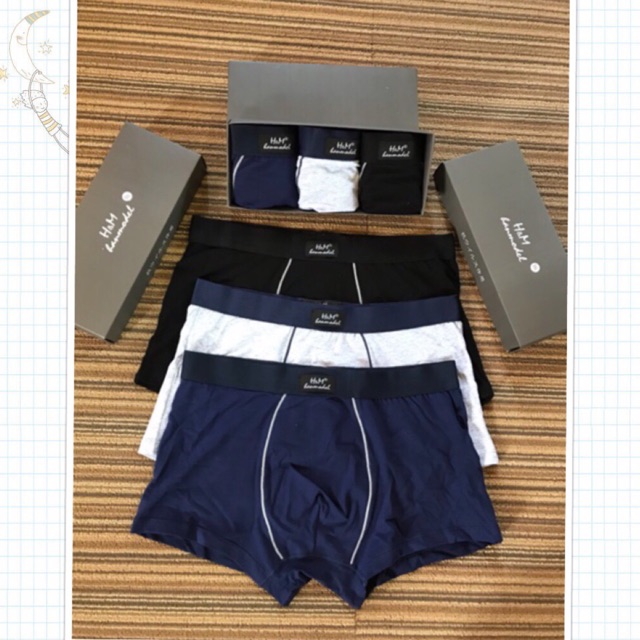 ️#SỊP #Hm XUẤT #NHẬT HÀNG XỊN ĐÉT Đóng hộp tuyệt đẹp, dùng để tặng thì cũng xuất sắc ? ?Giá 180k/hộp - giá quá yêu thương cho 1 sản phẩm cực đẹp. Cam kết hài lòng, ai chê em dẹp shop luôn ❤️ ✅ Chất cotton cực đẹp, thấm hút hoàn hảo. Bác nào thích hàng cao cấp thì về với đội của em ✅ Chuẩn từng đường kim mũi chỉ ✅ Hộp 3 chiếc màu sắc tuyệt đẹp, đóng trong hộp rất lịch sự và sang trọng, đem đi tặng thì chuẩn chỉ luôn ? ✅ Có 2 loaii chéo và đùi Bảng size tham khảo: + M : 50-58kg + L : 58 - 65kg + XL : 66 - 75kg + XXL : 75 - 85kg