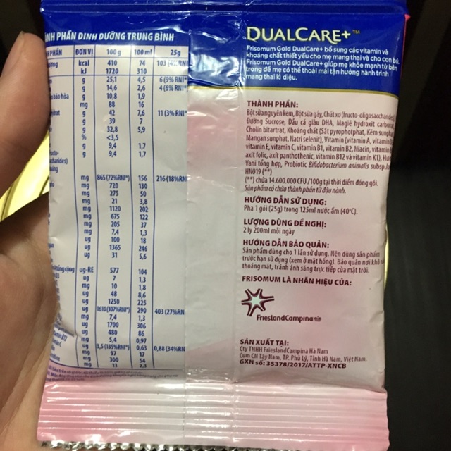 ️?Sữa bầu Frisomum vị Cam và Vani rất dễ uống, ko ngậy, ko gây mùi sữa. Là dòng sữa bầu duy nhất dùng được cho các mẹ bị tiểu đường thai kỳ. ?Friso® Mum Gold là sữa dành cho bà bầu duy nhất có chứa Prebiotics và Probiotics, giúp cải thiện hệ miễn dịch của mẹ, bảo vệ sức khoẻ cho cả mẹ và bé. Điều này rất quan trọng vì khi còn nằm trong bụng mẹ, sự khoẻ mạnh của bé sẽ phụ thuộc rất nhiều sức khoẻ của mẹ. Ngoài ra, Friso® Mum Gold còn chứa DHA, AA và SA, hỗ trợ phát triển trí não tối ưu cho bé. ➥ Dạng gói tiện lợi giúp mẹ có thể mang đi làm, đi chơi mà ko cồng kềnh. 1 gói (25gr) = 1 cốc sữa. ➥ Hàng chính hãng bao check ➥ Date 2020.