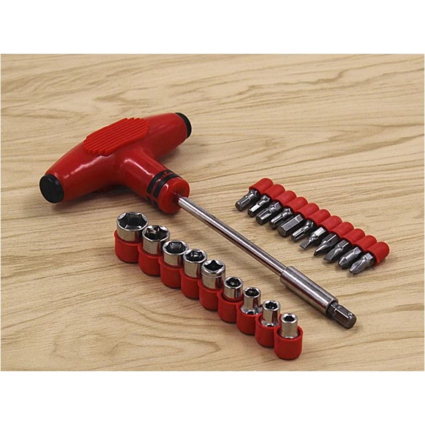 ️Giới thiệu sản phẩm Bộ tua vít đa năng 22 chi tiết Bộ tua vít đa năng 22 chi tiết JS1079hình chữ T với 11 đầu vít sẽ là công cụ hữu hiệu trong bộ dụng cụ sửa chữa của gia đình bạn. Sản phẩm được thiết kế đầy đủ các loại đầu vít thường dùng trong linh kiện điện tử, máy móc như: đầu dẹt, 4 cạnh, 5 cạnh và 6 cạnh... Mỗi dạng đều có đủ các cỡ từ lớn đến nhỏ nên thích hợp mở các thiết bị khi gặp sự cố. Cùng 9 loại đầuvặn bu lông đủ các kích cỡ giúp công việc của bạn không bị gián đoạn khi đang làm việc Mũi vít làm bằng chất liệu thép cứng, sử dụng lâu dài mà không lo bị biến dạng, gỉ sét. Phần cán của tô vít được thiết kế theo hình chữ T, chống trơn trượt hiệu quả. Đầu vít có nam châm giúp dính các đinh ốc mà không sợ bị rơi mất khi tháo ra hay lắp vào Bộ sản phẩm được sắp xếp gọn gàng trong 1 hộp nhỏ tiện lợi khi sử dụng & cất giữ Thông tin sản phẩm: Bộ tua vít đa năng 22 chi tiết JS1079 - Chất liệu: nhựa, thép - Kích thước hộp : 44x28x40 cm
