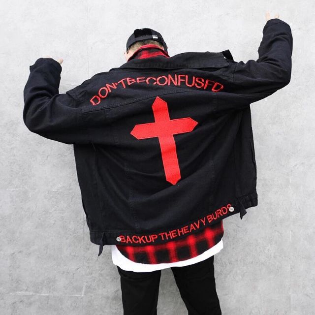 Áo khoác jean nam chữ thập sau lưng đặc biệt K - Áo khoác jeans