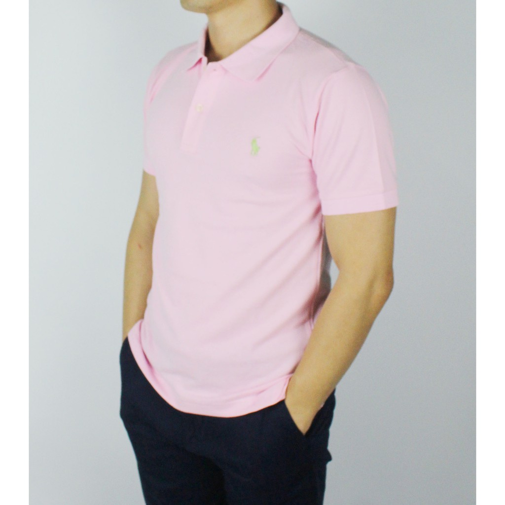 Áo phông ngắn tay cổ bẻ nam màu hồng