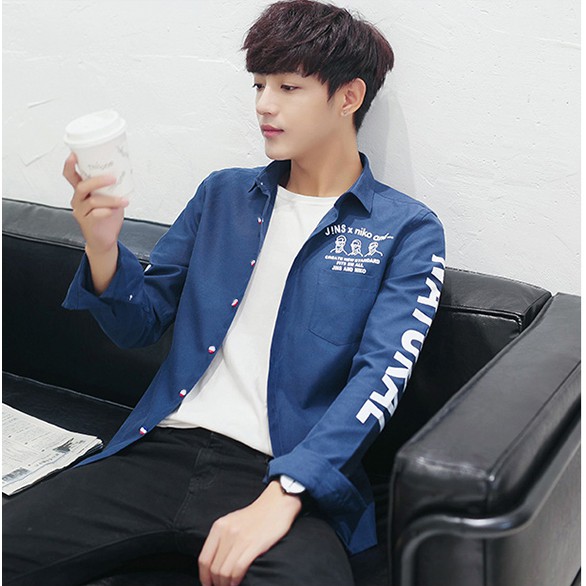 Áo Sơ mi Dài tay thêu tim đỏ tim đen hàng 2size M L ( kèm video ảnh thật) - Dài tay